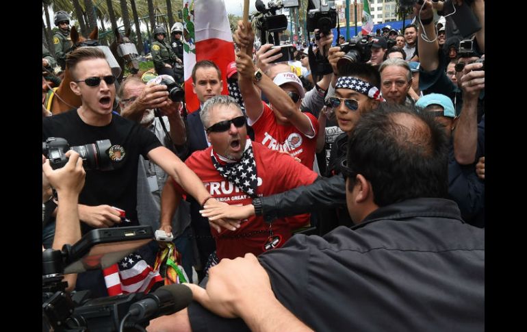 Internacional | La policía detuvo a varios que lanzaron objetos en el Centro de Convenciones de Anaheim Arrestan a manifestantes tras evento de Trump en California La policía detuvo a varias personas que lanzaron objetos en el Centro de Convenciones de Anaheim Por: NTX 25 de mayo de 2016 - 20:17 hs Luego de que Trump se retiró este miércoles, un pequeño grupo de manifestantes permaneció en la zona. AFP / M. Ralston LOS ÁNGELES, ESTADOS UNIDOS (25/MAY/2016).- Varios manifestantes fueron arrestados en Anaheim, tras las tensiones entre grupos antagónicos que asistieron a un evento del aspirante republicano a la presidencia estadounidense, Donald Trump, informaron autoridades policíacas. Los arrestos se dieron luego de que grupos a favor y en contra se enfrascaron en discusiones y se lanzaron objetos al término del evento celebrado en el Centro de Convenciones de Anaheim, confirmaron voceros de la policía. Una vez que finalizó el evento político, el Departamento de Policía de Anaheim resolvió que la manifestación terminara y ordenó que la gente congregada se dispersara, tras declarar que se trataba de una "presencia pública no autorizada". En abril pasado, en el primer evento de Trump en California, 20 personas fueron detenidas en Costa Mesa, después de que se produjeran incidentes en los que fueron dañados varios vehículos, algunos de la policía. Luego de que Trump se retiró este miércoles, un pequeño grupo de manifestantes permaneció en la zona e hizo caso omiso de las órdenes de la policía para dispersarse. Un bote de basura fue incendiado, y algunos manifestantes lanzaron piedras, pero fueron contenidos por los agentes y la policía montada. La víspera, al término de un evento político de Trump en el Estado de Nuevo México se registraron algunos incidentes, cuando un pequeño grupo de manifestantes lanzó consignas contra el republicano y rompieron una piñata con su imagen. Temas Norte América Estados Unidos California Republicanos Donald Trump Recibe las últimas noticias en tu e-mail Todo lo que necesitas saber para comenzar tu día Registrarse implica aceptar los Términos y Condiciones