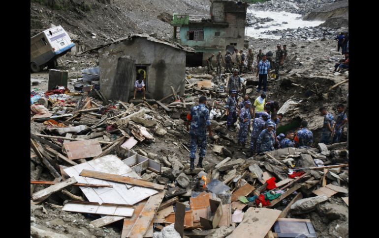 Internacional | Se recuperan los cuerpos de 17 mujeres, cuatro hombres, siete niños Ascienden a 30 los muertos por corrimiento de tierras en Nepal Se han recuperado los cuerpos de 17 mujeres, cuatro hombres, siete niños y dos no identificados Por: AFP 4 de agosto de 2014 - 09:55 hs KATMANDÚ, NEPAL (04/AGO/2014).- El balance de muertos por el corrimiento de tierras ocurrido el sábado en el noreste de Nepal ascendió a 30, y las autoridades locales temen que llegue a alcanzar las 160 víctimas mortales. Treinta cuerpos fueron extraídos de entre los escombros dejados por el deslizamiento de tierras, provocado por las fuertes lluvias del monzón, que destruyó varias aldeas a primeras horas del sábado cerca de un río en el distrito de Sindhupalchok, unos 120 km al noreste de la capital, Katmandú. "El balance de muertos ha alcanzado los 30, incluyendo 17 mujeres, cuatro hombres, siete niños y dos cuerpos que no hemos sido capaces de identificar", informó el jefe de la policía regional, Subodh Ghimire, quien precisó que esperan "encontrar muchos más cuerpos hoy". La policía y el ejército continúan la búsqueda con la ayuda de bulldozers y excavadoras para intentar encontrar los cuerpos de unos 130 habitantes desaparecidos. El jefe de la división de gestión de desastres de Nepal, Yadav Prasad Koirala, dijo que "el balance final podría estar en torno a 165 o más". Koirala explicó que la falta de registros oficiales dificulta a las autoridades determinar el número exacto de gente desaparecida. Temas Asia Desastres Naturales Nepal Lee También Viernes de tormentas en Guadalajara; aparecerán a esta hora ALERTA en Jalisco por formación de ciclón "Raymond" ¿Cuándo la tormenta tropical "Raymond" estará cerca de Jalisco? Huracán "Priscilla" deja cubiertas de arena zonas peatonales de Mazatlán Recibe las últimas noticias en tu e-mail Todo lo que necesitas saber para comenzar tu día Registrarse implica aceptar los Términos y Condiciones