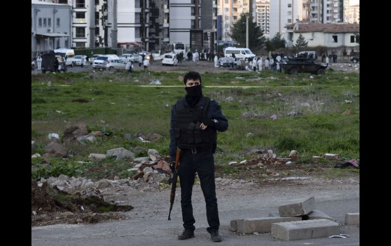 Internacional | Otras once personas resultaron heridas Ataque del PKK a un puesto militar turco deja un muerto Un coche cargado con explosivos fue lanzado sin conductor contra la oficina militar en Kiziltepe; la persona que falleció era un refugiado sirio Por: EFE 2 de abril de 2016 - 01:53 hs Las fuerzas de seguridad lanzaron una operación de búsqueda de los autores tras el atentado. EFE / STR ANKARA, TURQUÍA (02/ABR/2016).- Un refugiado sirio ha muerto y otras once personas, entre ellas tres niños, han resultado heridas en un ataque con coche bomba a un centro de reclutamiento del Ejército en el sureste de Turquía atribuido a la guerrilla kurda del Partido de los Trabajadores del Kurdistán (PKK), informan hoy los medios locales. Según la emisora CNNTürk, el ataque se produjo la pasada madrugada cuando un coche cargado con explosivos fue lanzado sin conductor contra la oficina militar en Kiziltepe. El vehículo chocó contra las barreras de protección en el exterior del jardín del edificio y explotó, evitando así, según ese medio, que el número de víctimas fuera mayor. Con todo, un refugiado sirio que trabajaba de guardia nocturno en una obra cercana murió debido a la detonación. Entre los once heridos se cuentan tres niños y un soldado. Decenas de edificios cercanos resultaron dañados. Las fuerzas de seguridad lanzaron una operación de búsqueda de los autores tras el ataque. Temas Medio Oriente Turquía Terrorismo Atentados PKK Recibe las últimas noticias en tu e-mail Todo lo que necesitas saber para comenzar tu día Registrarse implica aceptar los Términos y Condiciones