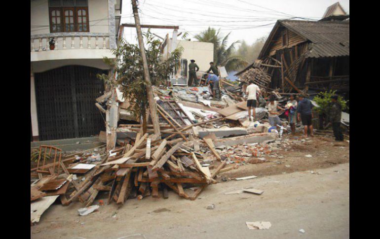 Internacional | El temblor derrumba unos 390 edificios en Birmania Aumenta a 74 el número de muertos por sismo El temblor derrumba unos 390 edificios en Birmania Por: REUTERS 26 de marzo de 2011 - 03:44 hs Imagen del desastre después del temblor en la localodad de Tachilek, Birmania. REUTERS / TACHILEK, BIRMANIA (26/MAR/2011).- Al menos 74 personas han muerto a causa del sismo de 6.8 grados en la escala de Richter que sacudió el jueves pasado el Noreste de Birmania, de acuerdo con un balance oficial. El epicentro del terremoto que derribó unos 390 edificios fue localizado en el Estado de Shan, una zona montañosa que forma parte del llamado “Triángulo dorado de la droga”, donde convergen las fronteras de Biermania, Tailandia y Laos. La mayor parte de las muertes se produjeron en pequeños pueblos que están diseminados por las montañas, y cuyo control se disputan las tropas gubernamentales birmanas y las organizaciones étnicas rebeldes Temas Asia Sismos Birmania Recibe las últimas noticias en tu e-mail Todo lo que necesitas saber para comenzar tu día Registrarse implica aceptar los Términos y Condiciones
