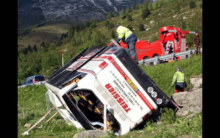 Internacional | Francia Autobús vuelca y deja dos muertos Un autobús que transportaba 28 pasajeros se volcó muy cerca de las montañas orientales de los Pirineos franceses Por: AFP 21 de junio de 2010 - 06:29 hs Las primeras investigaciones indican que el percance se produjo luego de una falla mecánica en el automotor. AFP / PARÍS, FRANCIA (21/JUN/2010).- Un autobús que transportaba 28 pasajeros se volcó muy cerca de las montañas orientales de los Pirineos franceses y dejó dos muertos y varios heridos. Las primeras investigaciones indican que el percance se produjo luego de una falla mecánica en el automotor. De acuerdo con el diario “El periodic d’Andorra”, varios de los pasajeros fueron expulsados del autobús. De acuerdo con el rotativo las víctimas fueron una mujer de 52 años y un hombre de 35, ambos de nacionalidad francesa. Entre los heridos dos personas se encontraban en estado de coma y dos estaban graves, incluido el chofer al que se le diagnosticó traumatismo craneoencefálico, mientras que 12 tenían heridas leves. El vehículo viajaba en dirección a Carcasona y Toulouse, después de una excursión a Andorra. Temas Europa Francia Accidentes en el mundo Lee También Reportan carambola en autopista a Morelia Muere conductor tras choque entre camioneta y camión en Arandas Macron tiene nuevo gabinete y enfrenta un complicado reto Conmociones cerebrales, la cuarta lesión más frecuente en partidos de la Conmebol Recibe las últimas noticias en tu e-mail Todo lo que necesitas saber para comenzar tu día Registrarse implica aceptar los Términos y Condiciones
