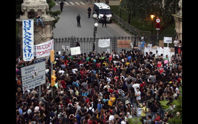 Internacional | Manifestantes protestan contra el presupuesto 2011 Autoridades catalanas cierran el paso a los ''indignados'' Los inconformes pretenden acordonar el Parlamento regional y así impedir que los diputados catalanes lleguen al pleno Por: AFP 15 de junio de 2011 - 02:54 hs Miles de manifestantes hacen plantón en el Parlamento de Cataluña un día antes de que inicie el debate del presupuesto 2011. REUTERS / BARCELONA, ESPAÑA (15/JUN/2011).- Las autoridades de Barcelona, España, cerraron ayer el Parque de la Ciudadela, donde se encuentra el Parlamento regional catalán, para impedir que los “indignados” puedan protestar ante la sede legislativa que hoy debate los presupuestos de 2011. Varias decenas de personas empezaron a primera hora de la tarde a reunirse ante las puertas cerradas del parque, de cuyo interior la Policía había desalojado previamente a los paseantes y turistas. Los “indignados” que acampa en una céntrica plaza barcelonesa en el marco del movimiento llamado 15-M, convocaron a sus seguidores a pasar la noche en los jardines de este Parque antes de movilizarse durante la primera sesión del “Parlament”. Los manifestantes pretenden acordonar el Parlamento regional para impedir que los diputados catalanes lleguen al pleno que, hoy y mañana, debatirá el proyecto de ley de presupuesto regional 2011, lo que constituye, según han advertido las autoridades, un acto delictivo castigado con penas de prisión de seis meses a un año. Los “indignados” quieren impedir la aprobación de estos presupuestos que prevén un recorte del gasto público del 10%, así como la reducción de prestaciones sociales y sanitarias. Algunos jóvenes protestaban a las puertas del recinto, varios de ellos provistos de bidones de agua y alimentos para pasar la noche en el parque, a la espera de que se les unieran más “indignados”. Durante el último mes el movimiento ha llevado a cabo diversas movilizaciones, especialmente, campamentos de protesta en varias ciudades españolas. Temas Europa España Manifestaciones en el mundo Recibe las últimas noticias en tu e-mail Todo lo que necesitas saber para comenzar tu día Registrarse implica aceptar los Términos y Condiciones