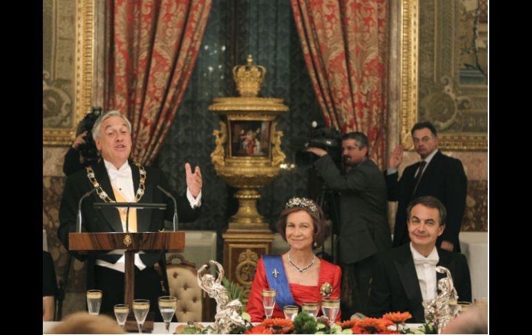 Internacional | El rey Juan Carlos I se compromete a la buena relación con el país chileno Autoridades españolas y Piñera defienden la diplomacia multilateral En la cena de gala ofrecida esta noche en el Palacio Real por los reyes de España y los Príncipes de Asturias en honor de Piñera se reconoció la fortaleza de Chile por superar el terremoto de hace un año Por: EFE 7 de marzo de 2011 - 19:57 hs Sebastián Piñera pronuncia unas palabras en presencia de la reina Sofía, y el presidente del Gobierno, José Luis Zapatero. EFE / MADRID, ESPAÑA (07/MAR/2011).- El rey Juan Carlos I ha subrayado hoy ante el presidente chileno, Sebastián Piñera, el "firme compromiso" con la paz, la libertad, la democracia y los derechos humanos que comparten España y Chile, así como su apuesta común por la diplomacia multilateral, "más necesaria en esta hora que nunca". En el brindis de la cena de gala ofrecida esta noche en el Palacio Real por los reyes de España y los Príncipes de Asturias en honor de Piñera y su esposa, Cecilia, el presidente chileno ha agradecido por su parte el apoyo recibido de España ante la UE y la OCDE y el aliento que el rey le proporcionó en los momentos difíciles que vivió su país durante 2010. Ante 122 invitados de los dos países, entre los que se encontraban autoridades y representantes destacados del mundo judicial, empresarial, académico y cultural, el rey ha destacado la voluntad común de impulsar las relaciones bilaterales en todos los ámbitos, "ante un horizonte lleno de desafíos, pero también de oportunidades". Tras animar a aprovechar los bicentenarios de la independencia chilena y de la Constitución de Cádiz para "aportar a las nuevas generaciones horizontes de más estrecho entendimiento", el rey ha precisado que esos nuevos horizontes, "no exentos de serias crisis" como la actual, están "llenos también de esperanzas" en lo que España y Chile pueden lograr al servicio del mundo y sus ciudadanos. El monarca ha dedicado unas palabras de recuerdo a las víctimas del terremoto que devastó hace un año Chile, cuando los reyes estaban a punto de visitar Valparaíso para asistir al Congreso Internacional de la Lengua Española, y ha elogiado el ejemplo de "fortaleza y espíritu de superación" dado entonces por los chilenos, que permitió devolver al país a la normalidad. "Fue la reacción de una gran nación, de un país moderno, eficiente y solidario", ha recalcado el Rey, quien ha valorado asimismo cómo "la eficiencia y el buen hacer" de los chilenos quedaron nuevamente de relieve en "el inolvidable y feliz rescate" de los 33 mineros atrapados en Atacama. Después de felicitarse por las crecientes relaciones económicas bilaterales, favorecidas por un tejido empresarial chileno "avanzado" y por la estabilidad y el "intenso y sostenido desarrollo" de Chile, producto "de una buena gestión", Juan Carlos I ha reafirmado el compromiso de las empresas españolas con la apuesta de modernización tecnológica del país andino. También ha ensalzado el "papel creciente de Chile en la comunidad internacional", que otorgan a esta nación "una excelente base" para avanzar hacia su objetivo de erradicar la pobreza y situarse "en cabeza del desarrollo de América del Sur". El jefe del Estado español ha valorado igualmente el trabajo de Chile para garantizar el éxito de la próxima cumbre Unión Europea-América Latina, que tendrá lugar en Santiago, y ha expresado su satisfacción por el reciente ingreso de este país en la OCDE y la intensificación de sus vínculos con la UE. Piñera, que completa esta noche la primera jornada de su visita de Estado, ha destacado en su respuesta que España fue el mejor aliado en las negociaciones con la UE y ha subrayado la importancia de la nueva Fundación Chile-España para estrechar aún más unos lazos bilaterales que son ya los propios de una "relación filial", capaz de "sobreponerse a conflictos e incomprensiones". El presidente chileno ha ilustrado el orgullo que siente su país por la herencia española con una cita de Miguel de Unamuno -"la mayor hazaña del pueblo vascongado es Chile"- y ha recordado cómo, en los últimos meses, los chilenos han mostrado "temple" frente a la adversidad y han sido capaces de reconstruir gran parte de los daños causados por el seísmo y consolidar el crecimiento económico. El jefe del Ejecutivo español, José Luis Rodríguez Zapatero, acompañado de su esposa, Sonsoles Espinosa, encabezaba en esta cena la representación del Gobierno, de la que formaban parte la vicepresidenta Elena Salgado y las ministras Trinidad Jiménez y Ángeles González Sinde. Los presidentes del Congreso, el Senado, el Tribunal Constitucional y el Consejo General del Poder Judicial figuraban también entre los invitados, junto a presidentes de los principales bancos y empresas españolas presentes en Chile y representantes de Universidades, instituciones culturales y medios de comunicación. Temas Europa España Chile Sebastián Piñera Recibe las últimas noticias en tu e-mail Todo lo que necesitas saber para comenzar tu día Registrarse implica aceptar los Términos y Condiciones