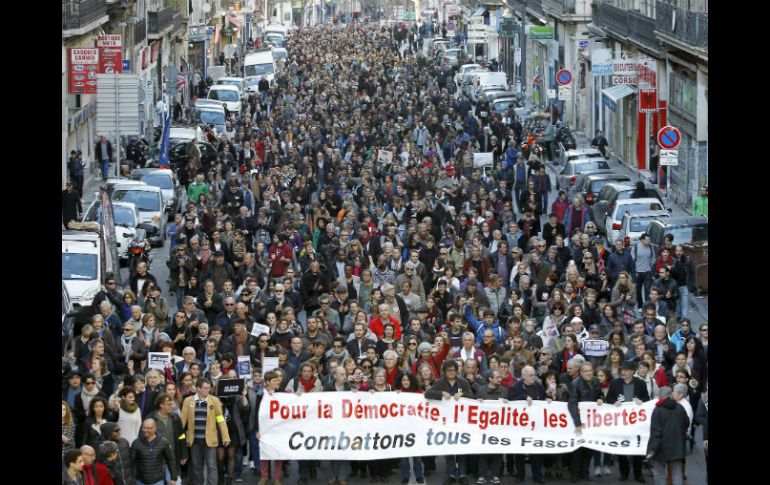 Internacional | Las manifestaciones se celebran en los cuatro puntos cardinales del país galo Autoridades francesas estiman 700 mil participantes en marchas Las manifestaciones se celebran en los cuatro puntos cardinales del país galo Por: NTX 10 de enero de 2015 - 12:12 hs PARÍS, FRANCIA (10/ENE/2015).- Alrededor de 700 mil personas se manifestaron en diversas ciudades de Francia en contra del terrorismo y en homenaje a las víctimas de los atentados de los tres últimos días en París, reportaron fuentes oficiales. El balance sobre las marchas, convocadas luego de la cadena de atentados que comenzó en la capital el miércoles pasado con el ataque a la sede de la revista satírica ''Charlie Hebdo'', fue realizado por el ministro del Interior, Bernard Cazeneuve. El reporte del ministro precisó que en la ciudad de Toulouse (sur) desfiló el mayor número de personas, 120 mil, según la policía, y 200 mil de acuerdo con los organizadores. Las manifestaciones se celebraron en los cuatro puntos cardinales del país. En Nantes (noroeste), 75 mil personas salieron a las calles para expresar su rechazo al terrorismo y homenajear a los casi 20 fallecidos de los últimos días en atentados en París. Otras marchas con miles de personas también se celebraron en Lille (norte), Rouen (oeste) y Bayona (suroeste), entre otras ciudades. En el sureño puerto de Niza, la manifestación fue silenciosa y congregó a más de 23 mil personas, de acuerdo con el balance oficial. Las concentraciones de este sábado preceden a la gran marcha nacional que se celebrará mañana por la tarde en París y a la que el gobierno espera que acudan varios centenares de miles de personas. También asistirán a la marcha, entre fuertes medidas de seguridad, el presidente francés, Francois Hollande; la canciller federal alemana, Ángela Merkel; y el primer ministro británico, David Cameron, entre otras personalidades políticas. Temas Europa Francia Tiroteo Terrorismo Manifestaciones en el mundo Recibe las últimas noticias en tu e-mail Todo lo que necesitas saber para comenzar tu día Registrarse implica aceptar los Términos y Condiciones
