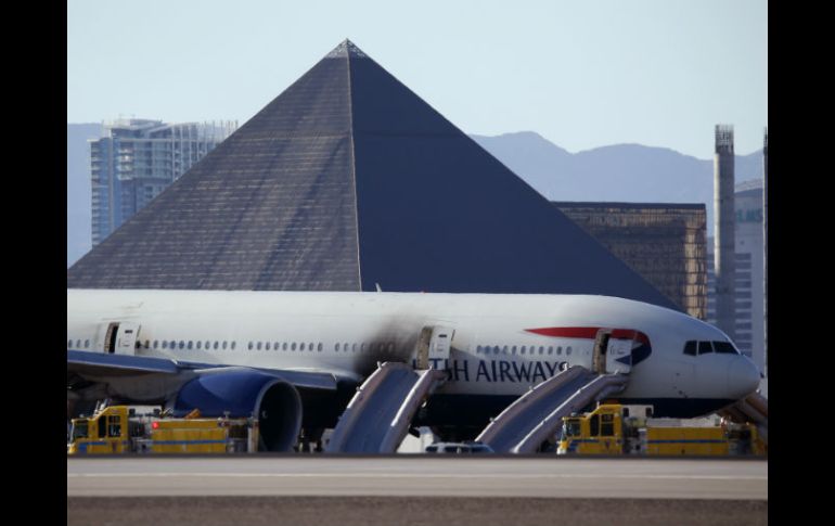 Internacional | El fuego en el motor de la aeronave de British Airways obliga a desalojar a pasajeros Avión se incendia en aeropuerto de Las Vegas El fuego en el motor de la aeronave de British Airways obliga a los pasajeros a ser desalojados Por: AP 8 de septiembre de 2015 - 19:11 hs NEVADA, ESTADOS UNIDOS (08/SEP/2015).- Un motor de un avión de British Airways se incendió el martes mientras la aeronave se preparaba para despegar en Las Vegas, lo que obligó a los pasajeros a desalojar por los toboganes de emergencia. El portavoz de la Administración Federal de Aviación, Ian Gregor, dijo que el motor izquierdo fue el que se encendió. Se podía ver una nube de humo negro ascendiendo, pero los bomberos cubrieron rápidamente la aeronave con retardante de fuego. El vocero del Aeropuerto Internacional McCarran, Chris Jones, dijo que los 159 pasajeros y 13 tripulantes salieron del avión. El aeropuerto informó en su cuenta de Twitter que dos pasajeros fueron llevados al hospital por lesiones menores. El departamento de bomberos del condado Clark dijo que el fuego no fue causado por impacto. El Boeing 777-200 se dirigía al aeropuerto Gatwick, cerca de Londres. Temas Norte América Estados Unidos Accidentes aéreos Recibe las últimas noticias en tu e-mail Todo lo que necesitas saber para comenzar tu día Registrarse implica aceptar los Términos y Condiciones