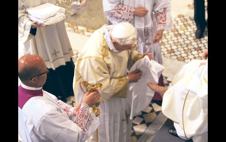 Internacional | El Papa elogia a Juan Pablo II Benedicto XVI lava pies en señal de humildad Dice que Dios sostiene a la Iglesia Católica a pesar de las fallas de sus discípulos Por: EL INFORMADOR 22 de abril de 2011 - 02:28 hs CIUDAD DEL VATICANO (22/ABR/2011).- Satanás ha expuesto a los sacerdotes ante el mundo en sus pecados, afirmó Benedicto XVI, al celebrar la misa del Jueves Santo. Sin embargo, señaló que Dios sostiene a la Iglesia Católica a pesar de las fallas de sus discípulos. La tarde de ayer, el Papa presidió la celebración “in coena domini” en recuerdo de la última cena y durante la cual cumplió el rito del lavado de los pies a 12 curas (imagen). Por otro lado, Benedicto XVI elogió a su predecesor, Juan Pablo II, al afirmar que el mundo no debe olvidar los radiantes ejemplos de fe. Cabe recordar que la beatificación del fallecido Papa está prevista para el 1 de mayo. Por último, el Vaticano informó que el Pontífice se comunicará vía satélite con la Estación Espacial Internacional el 4 de mayo, para dialogar con los tripulantes con motivo de la última misión del transbordador Endeavour. Temas Europa Ciudad del Vaticano Papa Benedicto Lee También Vive Latino 2026: Artistas, precios oficiales y fechas de preventa Joven que disparó a David Cohen afirma que le ofrecieron dinero David Cohen: ¿Quién es el abogado atacado en Ciudad de México? Clima CDMX: Pronóstico de lluvia hoy, 14 de octubre Recibe las últimas noticias en tu e-mail Todo lo que necesitas saber para comenzar tu día Registrarse implica aceptar los Términos y Condiciones