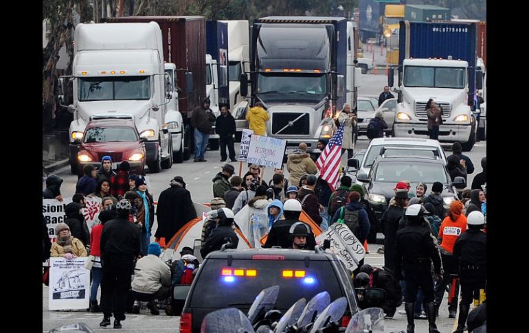 Internacional | Protestan contra los excesos y la falta de regulación del sistema financiero Bloquean manifestantes entradas a puertos de Oakland y San Diego Por lo menos 250 policías de distintas corporaciones vigilaban a distancia prudente la protesta Por: NTX 12 de diciembre de 2011 - 11:33 hs Los camiones se detienen después de que manifestantes bloquearon la carretera en Long Beach. AFP / SAN DIEGO, ESTADOS UNIDOS (127DIC/2011).- Manifestantes contra Wall Street bloquearon hoy las entradas a los puertos marítimos en Oakland y San Diego, mientras otros grupos marchaban a las terminales en Long Beach, Los Angeles, Seattle y Anchorage. Unos 60 manifestantes bloquearon una de las dos entradas al puerto de San Diego al final de una marcha desde el vecindario latino Barrio Logan, mientras otro grupo se dirigía al portal restante. Por lo menos 250 policías de distintas corporaciones vigilaban a distancia prudente la protesta. El grupo ante el portal del puerto circulaba tras una manta en fondo azul con la leyenda: "La globalización explota, esclaviza y contamina". La organización Ocupe San Diego informó que permanecerá en las inmediaciones hasta horas de la tarde, cuando cientos de camiones de carga tendrían que salir del puerto para distribuir mercancías que llegan de la Cuenca del Pacífico al sur de California. En Oakland otro grupo se apostó a la entrada del puerto más importante del norte de California. Es la segunda vez que Ocupe Oakland obliga a suspender operaciones en la terminal marítima de esa ciudad. Por su parte, otros contingentes marchaban a los puertos de Los Angeles, Long Beach, Seattle y Anchorage. Ocupe Portland en el estado de Oregon informó que bloqueó ese puerto sin incidentes también esta mañana. La organización de manifestantes contra Wall Street esperaba impactar a la banca Goldman Sacks, una corporación que según Ocupe Wall Street basa buena parte de sus operaciones en intercambio económico marítimo. Aunque el Sindicato de Estibadores demanda la renovación de su contrato colectivo en Long Beach y Oakland, la unión sindical informó que los manifestantes contra Wall Street no les representan en su protesta. Temas Estados Unidos Manifestaciones en el mundo Wall Street Lee También Así afectarán a México los frentes fríos este fin de semana EU detiene a un palestino por los atentados del 7 de octubre en Israel Norris domina en Austin, pero la sorpresa la da Hülkenberg Trump asegura que Maduro le ofreció 'de todo' para evitar conflictos con EU Recibe las últimas noticias en tu e-mail Todo lo que necesitas saber para comenzar tu día Registrarse implica aceptar los Términos y Condiciones