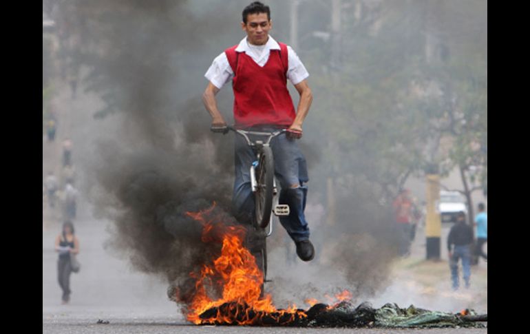 Internacional | Con piedras y palos, los inconformes se enfrentan a la Policía y Ejército hondureño Bloqueo de zelayistas deja cinco heridos y 50 arrestados Las autoridades acaban con la manifestación con gases lacrimógenos y chorros de agua Por: EL INFORMADOR 18 de marzo de 2011 - 02:12 hs Al menos 31 docentes fueron detenidos sólo en Comayagua. AP / TEGUCIGALPA, HONDURAS (18/MAR/2011).- Cinco militares y policías resultaron heridos y unas 50 personas fueron arrestadas, cuando seguidores del derrocado presidente Manuel Zelaya bloquearon puentes y calles de las principales ciudades de Honduras para exigir mejores condiciones de vida y el retorno de su líder. Los zelayistas se enfrentaron con piedras y palos a fuerzas combinadas de la Policía Antimotines y el Ejército en una avenida de Comayagua, a unos 140 kilómetros al norte de Tegucigalpa, informó el ministro de Defensa, Marlon Pascua. El líder de los maestros Eulogio Chávez dijo que las manifestaciones ocurrieron en Copán, al oeste, San Pedro Sula y El Progreso, al norte, Comayagua, en la región central, y Choluteca, al sur de Honduras. Acusó al Gobierno de “desatar la barbarie y represión en nuestra contra”. Las autoridades desalojaron a los manifestantes de las vías públicas con gases lacrimógenos y chorros de aguas. Temas América Latina Manifestaciones en el mundo Honduras Recibe las últimas noticias en tu e-mail Todo lo que necesitas saber para comenzar tu día Registrarse implica aceptar los Términos y Condiciones