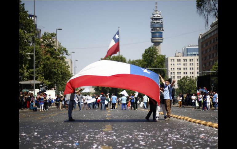 SANTIAGO, CHILE (16/NOV/2016).- Los empleados públicos de Chile se manifestaron ayer por las calles de la capital para exigir un reajuste salarial después de casi cuatro semanas de una huelga que ha causado distintos problemas en servicios estatales.Los funcionarios rechazan el reajuste salarial de 3.2% que propone el Gobierno y piden que se les aumente hasta 4%, una cifra tres puntos porcentuales inferior a la que exigían desde un inicio.“El 3.2 % tiene que moverse, porque el reajuste real significa 0.2%, que es el más deficiente de los últimos años. No es lo justo, no es lo que corresponde, no es lo que hay”, dijo ayer el presidente de la Agrupación Nacional de Empleados Fiscales (ANEF), Raúl de la Puente, en una entrevista con el programa “Tu Mañana” de Televisión Nacional.Centenares de personas avanzaron por la Alameda hasta Los Héroes con pancartas y carteles que hacían alusión a la necesidad de contar con un “reajuste digno”.La manifestación, que se desarrolló con normalidad, terminó con algunos incidentes aislados.