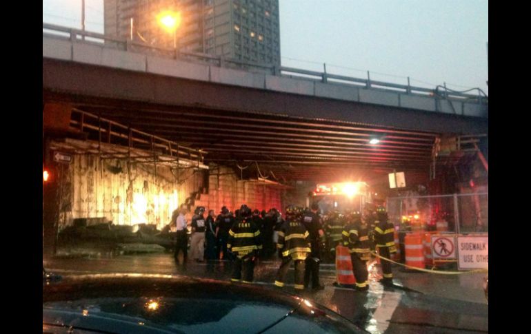 Internacional | El derrumbe se produce durante una tormenta eléctrica Cae fachada subterránea en Puente de Brooklyn El derrumbe se produce durante una tormenta eléctrica Por: AP 3 de julio de 2014 - 09:27 hs NUEVA YORK, ESTADOS UNIDOS (03/JUL/2014).- Parte de la fachada interior de un paso subterráneo del Puente de Brooklyn se derrumbó y lesionó levemente a cinco personas, informaron las autoridades. El derrumbe se produjo durante una tormenta eléctrica, minutos antes de las 8:00 de la noche del miércoles. Un vocero de los bomberos dijo que el derrumbe afectó una sección de unos 7.6 metros de la fachada. No se identificó a los heridos, pero se informó que sufrieron lesiones leves. Los inspectores del departamento de construcciones investigaban el derrumbe, cuyas causas aún se desconocen. Temas Norte América Accidentes en el mundo Estados Unidos Nueva York Lee También ¿Bad Bunny fuera del Super Bowl? Este sería el show alternativo Poza Rica, inundado por desbordamiento del río Cazones Bad Bunny permanece sentado durante "God Bless America" y enciende las redes Lista actualizada de selecciones que ya clasificaron al Mundial 2026 Recibe las últimas noticias en tu e-mail Todo lo que necesitas saber para comenzar tu día Registrarse implica aceptar los Términos y Condiciones