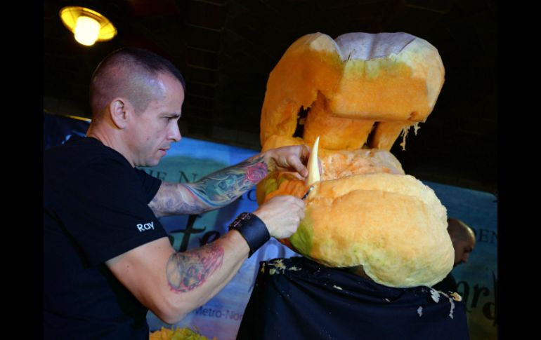 El acto del 18 de octubre fue el comienzo de un fin de semana de talla de calabazas gigantes en el Jardín Botánico de Nueva York. Grandes o pequeñas, las calabazas son un "material genial para trabajar", dijo el maestro tallador, Ray Villafane, mientras trabajaba junto con otros colegas en sus decoraciones de Halloween. "Cuando tallas un rostro o algo en ella, es formidable ver que cómo una fruta pequeña cobra vida".Sin embargo, hubo pocas frutas pequeñas en este acto. Una de las calabazas que Villafane y los otros esculpieron fue una de 678 kilos cosechada en Edinburg, Pensilvania. Se le dio forma de "criatura carnívora", con una serie de dientes temibles.Hay calabazas todavía más grandes en los terrenos del jardín botánico del Bronx, entre ellas una de 921 kilos de Napa, California. En el jardín se exhibirán más de 500 figuras talladas en una muestra que durará, naturalmente, hasta Halloween (Día de las Brujas).