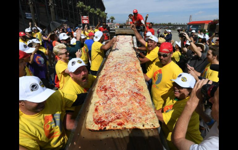LOS ÁNGELES, ESTADOS UNIDOS (11/JUN/2017).- Una pizza de casi dos kilómetros de extensión elaborada en el noreste de Los Ángeles (EU) se convirtió en la "pizza más larga del mundo", y superó la marca registrada el año pasado en Italia.Desde tempranas horas, decenas de personas y chefs trabajaron en el circuito automovilístico de Fontana en la elaboración y cocción de la que hoy ha logrado el hito, tras alcanzar los seis mil 333 pies (mil 093 kilómetros) de largo, medida certificada por representares de la organización encargada del libro de los récords Guinness.Montada a su vez sobre "el andamio más largo jamás construido", el peso total de la pizza ha llegado a las 17 mil 200 libras (siete mil 808 kilos), según los organizadores del acto.Con una masa que pesó unas ocho mil libras (tres mil 632 kilos), además de tres mil 600 libras (mil 634 kilos) de queso y cinco mil 600 libras (dos mil 542 kilos) de salsa, la pizza ha logrado "un gran sabor", de acuerdo a los organizadores, entre ellos las empresas Italforni USA Ovens y PizzaOvens.com.Hasta hoy, el récord Guinness de la pizza más larga se registró en 2016 en Italia, en donde se preparó una de seis mil 082 pies (mil 085 kilómetros).Para preparar la pizza hicieron falta tres hornos industriales que funcionaron sin parar durante ocho horas, y que fueron movilizados a lo largo de la pizza cada 17 minutos, de manera que los expertos y voluntarios que participaron en la elaboración tuvieron que mantener el ritmo a lo largo de un proceso que concluyó bien entrada la tarde.Tony Gemignani, Giulio Adriani, Tom Lemann, John Arena, Fred Mortati, Massimo Balacchi y Jimmy DeSisto fueron los expertos que participaron en el evento, de entrada gratuita y publicitado como "una razón para celebrar el humanismo y la amistad".El resultado final será donado a bancos de alimentos locales y albergues para desamparados.
