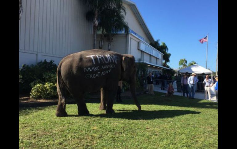 Internacional | El paquidermo, símbolo del Partido Republicano, tenía escrito un mensaje en su lomo Campaña de Trump llega con elefante a un evento en Florida El paquidermo, símbolo del Partido Republicano, tenía escrito un mensaje en su lomo Por: EFE 28 de noviembre de 2015 - 11:25 hs Seguidores del aspirante dieron paso al elefante mientras le tomaban fotos. TWITTER / @sbustosAP MIAMI, ESTADOS UNIDOS (28/NOV/2015).- La campaña de Donald Trump llegó hoy a Sarasota, en Florida, precedida de un elefante que lo hizo a pie y con el mensaje del precandidato presidencial republicano escrito en su lomo: "Hacer Estados Unidos grandioso de nuevo". Seguidores del aspirante dieron paso al elefante, símbolo del Partido Republicano, mientras le tomaban fotos. Esta semana el aspirante republicano a la Casa Blanca protagoniza una nueva polémica al burlarse de un periodista del New York Times con discapacidad y negarse a pedir disculpas. El candidato adelantó hoy en su cuenta de Twitter que discutirá en la reunión en Sarasota el tema de la comunidad discapacitada. "Prácticamente nadie ha gastado más dinero en ayudar al pueblo estadounidense con discapacidad que yo", aseguró Trump. El aspirante tiene previsto presentarse esta tarde en Robarts Arena, en la ciudad de Sarasota, en la costa oeste de Florida. Desde temprano en la mañana comenzaron a llegar seguidores del magnate inmobiliario, pero también sus críticos con pancartas con su foto y un mensaje que dice: "El rostro del racismo". Con múltiples polémicas, Trump es protagonista de la campaña presidencial de 2016 en Estados Unidos, desde que se refirió a los mexicanos como "violadores" y "criminales" en junio pasado cuando lanzó su precandidatura. Sin embargo, el magnate lidera desde hace meses los sondeos de las primarias republicanas, ahora con un 27.5 % según la media que elabora por Real Clear Politics. Temas Norte América Estados Unidos Republicanos Donald Trump Lee También 'Chicharito' marca su primer gol al América en partido amistoso Zelenski informa a Trump sobre ataques rusos y discuten reforzar la defensa aérea de Ucrania "Raymond" baja su potencia, pero tocará tierra en horas En Hidalgo, caminos destrozados complican rescates y ayuda Recibe las últimas noticias en tu e-mail Todo lo que necesitas saber para comenzar tu día Registrarse implica aceptar los Términos y Condiciones