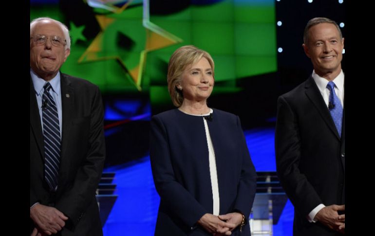 Bernie Sanders, Hillary Clinton y Martin O'Malley, antes del comienzo del primer debate demócrata. EFE / M. Nelson