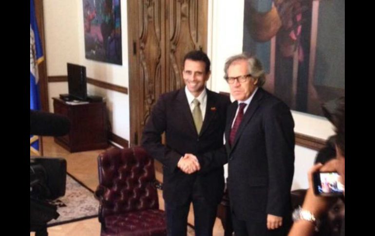 Internacional | El líder opositor venezolano también pedirá la participación de la Unasur y la UE Capriles pide a OEA envíe misión para elecciones en Venezuela El líder opositor venezolano también pedirá la participación de la Unasur y la UE Por: NTX 27 de julio de 2015 - 17:13 hs WASHINGTON, ESTADOS UNIDOS (27/JUL/2015).- El líder opositor venezolano Henrique Capriles solicitó hoy al secretario general de la Organización de Estados Americanos ( OEA), Luis Almagro, enviar una misión de observadores a su país para las elecciones legislativas de diciembre. Capriles dijo que en adición a la OEA, buscarán igualmente que la Unión de Naciones Suramericanas (Unasur) y la Unión Europea (UE) envíen misiones "de acompañamiento" para elecciones del 6 de diciembre próximo, en las cuales se renovará la Asamblea Nacional. "El acompañamiento es fundamental para que se den las garantías para un proceso electoral en Venezuela que al día siguiente nos permita cambiar de rumbo y podamos solucionar (la situación actual), en el marco de la Constitución y de manera pacífica, democrática, electoral", expresó. El dirigente del partido Primero Justicia dijo que la presencia de observadores extranjeros cobra mayor importancia ante las tendencias que apuntan un triunfo de la oposición, a partir del creciente malestar por la situación económica, escasez de alimentos y de productos básicos. "Si las elecciones fueran este domingo la oposición ganaría con una ventaja de 16 puntos", aseguró. Hablando con reporteros al término del encuentro privado de casi dos horas que sostuvo con Almagro en la sede de la OEA, Capriles caracterizó la situación actual como una bomba de tiempo, "que nosotros queremos desactivar". Capriles dijo haber explicado a Almagro la situación que vive su país, sumido en la peor crisis económica y social de su historia, con una inestabilidad política acentuada por los presos políticos y la "purga" del gobierno para impedir a opositores participar en esos comicios. Insistió que el propósito de su breve viaje a la capital estadounidense para entrevistarse con Almagro fue exponer la situación que se vive y reiterar la importancia de que la OEA tenga presencia como observador en estas elecciones. Mencionó que están conscientes que el eventual envío de una misión de la OEA requiere que haya una invitación por parte de las autoridades electorales de su país, la cual tendría que darse antes de septiembre próximo, a fin de permitir su preparación. El gobernador del estado de Miranda manifestó: "Nosotros queremos que la bomba no explote. No estamos buscando que haya una ruptura en Venezuela, ni que esto se vaya (a resolver) en términos de un escenario de confrontación". "Queremos desactivar la bomba y parte de desactivar la bomba significa tener un proceso electoral el 6 de diciembre transparente, donde los venezolanos puedan votar sin ningún tipo de coerción y que ejerzan su derecho con libertad a votar y elegir", subrayó. Capriles retornó este mismo lunes a Venezuela, aunque adelantó sus planes de viajar en los próximos días a Europa para solicitar el envío de una misión de observación electoral, como lo hará en su momento con la Unasur. Temas América Latina Venezuela OEA Henrique Capriles Lee También El "próximo premio será la libertad de Venezuela": María Corina Machado Chivas y América empatan en partido amistoso 'Chicharito' marca su primer gol al América en partido amistoso "Chucky" Lozano reconoce que jugaría en Chivas o en América Recibe las últimas noticias en tu e-mail Todo lo que necesitas saber para comenzar tu día Registrarse implica aceptar los Términos y Condiciones