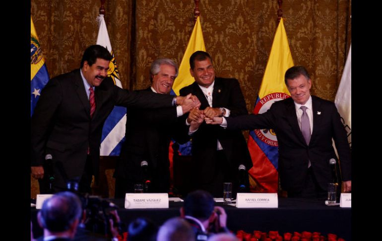 Internacional | El presidente colombiano reclamó a Nicolás Maduro el cierre de la frontera Caracas 'rompió las reglas del juego', según Juan Manuel Santos El presidente colombiano reclamó a Nicolás Maduro el cierre de la frontera y el trato a sus paisanos Por: EFE 23 de septiembre de 2015 - 03:09 hs Los presidentes de Venezuela y Colombia se reunieron en Quito para tratar la crisis fronteriza. EFE / L. Muñoz BOGOTÁ, COLOMBIA (23/SEP/2015).- El presidente de Colombia, Juan Manuel Santos, afirmó que en la reunión del lunes en Quito con su homólogo venezolano, Nicolás Maduro, le dijo que “rompió las reglas del juego” al tomar la decisión de cerrar la frontera y de “violar los derechos” de sus compatriotas. Santos también recordó que ambos se saludaron “con frialdad” y después “comenzó el memorial de agravios de un lado y del otro”. Los dos mandatarios se reunieron en Quito, bajo el auspicio de la Comunidad de Estados Latinoamericanos y Caribeños y la Unión de Naciones Suramericanas, tras más de un mes de crisis fronteriza. En la cita acordaron el retorno de sus respectivos embajadores y la apertura de una investigación sobre la situación de la frontera común, entre otras medidas para tratar de solucionar la crisis bilateral que mantienen. Temas América Latina Venezuela Colombia Nicolás Maduro Juan Manuel Santos Lee También Analistas califican la derrota de México: "el resultado más desalentador del año" El "próximo premio será la libertad de Venezuela": María Corina Machado Zague aseguró que "no existe calidad" en el futbol mexicano Chivas y América empatan en partido amistoso Recibe las últimas noticias en tu e-mail Todo lo que necesitas saber para comenzar tu día Registrarse implica aceptar los Términos y Condiciones