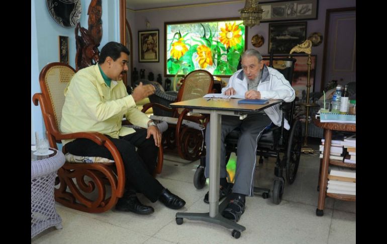 Fidel Castro y Maduro mantuvieron un encuentro de dos horas y media, dijo a medios oficiales cubanos el gobernante venezolano, quien señaló que encontró al líder cubano escribiendo corrigiendo artículos, "lleno de optimismo y con una fuerza tremenda".El presidente venezolano declaró que Fidel Castro -de 89 años y retirado del poder desde 2006- es el "hombre más informado del planeta" y que se mantiene muy atento a los planes de cooperación entre Cuba y Venezuela, especialmente los referidos a la producción de alimentos.Maduro hizo estas declaraciones a medios cubanos en el Aeropuerto de La Habana, desde donde regresó a Venezuela tras una visita de algo más de un día a La Habana cuyo objetivo ha sido reafirmar la alianza entre su país y Cuba con la renovación del plan anual de colaboración bilateral.El viernes, el presidente de Venezuela se reunió con su homólogo cubano, Raúl Castro, quien le condecoró con la Orden José Martí, la más alta distinción que concede el Gobierno cubano.Durante esa visita, el Gobierno de Cuba reiteró su apoyo "inquebrantable" al de Nicolás Maduro y volvió a criticar la orden ejecutiva de Estados Unidos que declara a Venezuela como una amenaza para su seguridad.La visita de Maduro se ha producido en vísperas de la llegada del presidente Obama este domingo por la tarde a La Habana para cursar una visita histórica con el fin de apuntalar el proceso de acercamiento entre Cuba y EU.