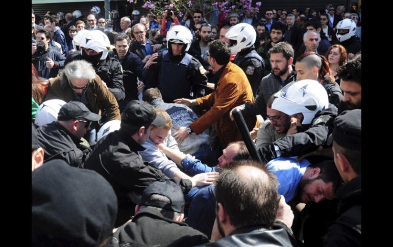 Internacional | Manifestaciones interrumpen desfiles durante fiesta nacional Celebración de independencia en Grecia marcada por protestas Manifestaciones interrumpen desfiles durante fiesta nacional Por: REUTERS 25 de marzo de 2012 - 17:31 hs Unos policías cargan contra unos manifestantes durante una concentración en el Día de la Independencia de Grecia. EFE / TESALONICA, GRECIA (25/MAR/2012).- La policía griega lanzó gases lacrimógenos el domingo para dispersar a manifestantes que protestaban contra las medidas de austeridad durante los desfiles de la fiesta nacional, cuando se celebraba la independencia griega del control otomano en varias ciudades del país. El desfile anual en memoria del alzamiento griego en 1821 se celebró bajo medidas de seguridad sin precedentes en Atenas, impidiendo la repetición de pequeños enfrentamientos e interrupciones en celebraciones anteriores, cuando los manifestantes llamaron traidor al presidente Karolos Papoulias. Las protestas reflejan el descontento público por las asfixiantes medidas de austeridad impuestas por el Gobierno para asegurar la financiación que necesita de sus acreedores internacionales con el objetivo de mantenerse a flote. Las medidas, que incluyen grandes recortes a sueldos y pensiones, han ayudado a sumir la economía griega en su peor recesión en cuatro décadas, llevando el desempleo a un récord del 21 por ciento. Unos 4 mil agentes de policía se desplegaron por las acordonadas calles de Atenas, con francotiradores en el tejado del Parlamento y otros edificios de la céntrica plaza Syntagma, escenario de violentas protestas contra la austeridad el año pasado. El desfile en la capital concluyó de forma pacífica, aunque las estrictas medidas de seguridad impidieron que mucha gente, aparte de las autoridades y dignatarias, pudieran acercarse lo bastante para verlo. "Hoy el pueblo griego está librando una dura batalla. Tras conseguir lo imposible entonces, tendremos también éxito esta vez", dijo a la prensa el presidente Papoulias luego del desfile en Atenas. Grecia, que celebrará elecciones a finales de abril o principios de mayo en medio de profundas dificultades económicas, necesita atenerse a las difíciles reformas económicas prescritas por sus acreedores -el Fondo Monetario Internacional y la Unión Europea- a fin de seguir recibiendo ayuda dentro de un segundo paquete de rescate. En la ciudad portuaria de Patras, un grupo de 50 manifestantes lanzó piedras y botellas a la policía cuando se les impidió acercarse a la grada de autoridades que asistían a un desfile de estudiantes. La policía también lanzó gases lacrimógenos a unos 200 manifestantes que intentaron interrumpir desfiles de estudiantes en las ciudades de Heraclión y Chania, en la isla de Creta. En todo el país se detuvieron a 39 personas, según la policía. Temas Europa Manifestaciones en el mundo Grecia Lee También Marchas CDMX: Estas son las afectaciones viales de hoy, 13 de octubre Sociales: El Informador inicia una nueva etapa con la moderna imprenta "Doña Stella" Lo peor es que Claudia también tiene sus dudas Sobrevivientes de tortura inician huelga de hambre Recibe las últimas noticias en tu e-mail Todo lo que necesitas saber para comenzar tu día Registrarse implica aceptar los Términos y Condiciones