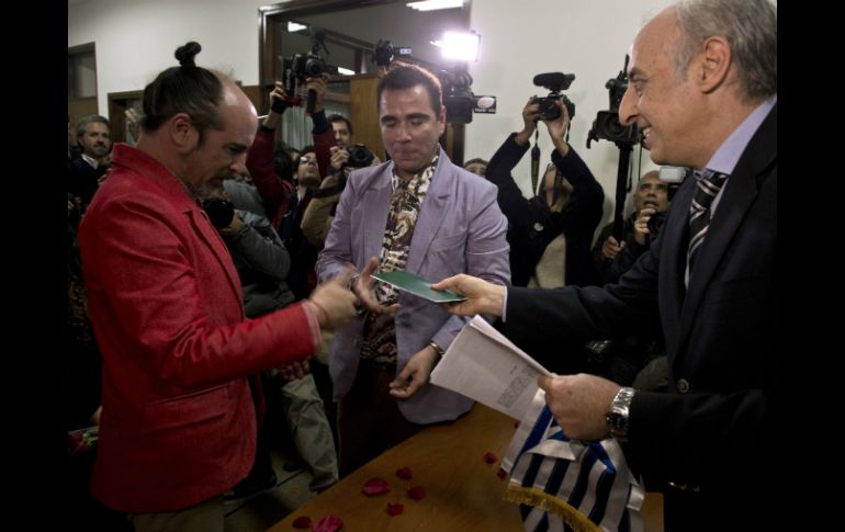 Internacional | Ya suman cuatro las parejas gay que han contraído matrimonio en el país Celebran primera boda gay en público en Uruguay Ya suman cuatro las parejas gay que han contraído matrimonio en el país Por: AP 22 de agosto de 2013 - 18:47 hs Sergio Miranda y Rodrigo Borda contraen matrimonio al lado de sus familiares y amigos. AFP / MONTEVIDEO, URUGUAY (22/AGO/2013).- No fue el primero, pero fue el primero que se celebró en público: por primera vez una pareja gay se casó en Uruguay a la vista de todos, rodeada de amigos, familiares, decenas de periodistas nacionales y extranjeros, activistas, dirigentes políticos y hasta la embajadora de Estados Unidos, Julyssa Reinoso. El clima fue de algarabía y de fiesta. "Los declaro unidos en matrimonio", dijo el juez César Comastri, alterando la tradicional fórmula de "marido y mujer". Una lluvia de arroz y pétalos de rosa cayó sobre los cónyuges, los dos hombres, Sergio Miranda y Rodrigo Borda. Miranda llevaba una camisa con un llamativo estampado colorido y curvilíneo y un saco color lila. Rodrigo, una camisa rosada con lunares y un saco rojo intenso. "Es un momento personal muy importante, pero también es muy importante para el país. Hay gente que peleó mucho para esto", sostuvo Miranda, de 45 años, tras la ceremonia. "Y es un mensaje muy importante que está emitiendo Uruguay para el resto del mundo, un mensaje de igualdad, de inclusión, de diversidad, donde no hay ciudadanos de primera y de segunda. Mientras países como Rusia tienen leyes nefastas homofóbicas (...) en Uruguay podemos casarnos y celebrar el amor". Borda, que tiene 39 años, vive en pareja con Miranda desde hace 14 años. Los dos son profesionales de la comunicación. También hoy en la ciudad de Mercedes, 278 kilómetros al oeste de Montevideo, se casó otra pareja de hombres. El Parlamento uruguayo aprobó la ley de matrimonio igualitario el 10 de abril. La primera boda gay se realizó el 5 de agosto en una ceremonia privada, en un hospital, porque uno de los dos conyugues estaba gravemente enfermo. Pocos días después se le otorgó una libreta de casamiento uruguaya a una pareja homosexual que se había casado en 2012 en Argentina. Con los dos casamientos de hoy ya son cuatro las parejas gay que han contraído enlace en Uruguay. Temas América Latina Uruguay Matrimonio homosexual Homosexualidad Lee También Lugar de Sudamérica prohíbe Halloween por usar símbolos vinculados a la muerte Equipos que podrían quedar eliminados del Play In en la jornada doble de la Liga MX ¿Dónde ver EN VIVO el partido de J14 América vs Puebla? Venezuela Recibe las últimas noticias en tu e-mail Todo lo que necesitas saber para comenzar tu día Registrarse implica aceptar los Términos y Condiciones