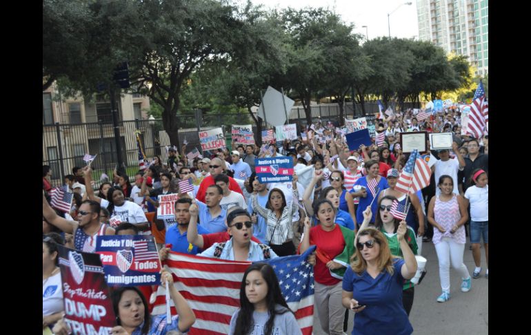 Internacional | Hacen un llamado a los latinos para evitar que el magnate llegue a la Casa Blanca Centenares de personas protestan contra Donald Trump en Texas Hacen un llamado a la comunidad latina para evitar que el magnate llegue a la Casa Blanca Por: EFE 14 de septiembre de 2015 - 21:34 hs Los participantes marchaban bajo el lema 'Trump a la basura', en protesta por las declaraciones del precandidato. NTX / F. Trujillo TEXAS, ESTADOS UNIDOS (14/SEP/2015).- El precandidato republicano a la presidencia de Estados Unidos Donald Trump se encontró hoy en Dallas (Texas) con la mayor manifestación de rechazo desde que empezó su campaña, aunque sus simpatizantes multiplicaban en número a sus detractores. Entre mil y tres mil personas, dependiendo de la fuente, se manifestaron por las calles de la ciudad texana bajo el lema "Trump a la basura" ("Dump the Trump", en inglés), en protesta por las declaraciones y propuestas del polémico aspirante republicano en referencia a la inmigración. "No estamos buscando pelea. Solo queremos dejarle claro a Donald Trump que su discurso de odio e intolerancia no es bienvenido. Texas ha sido un estado bilingüe y multicultural desde que se fundó", dijo al The Dallas Morning News el abogado Domingo García, presente en la marcha. En su mayoría hispanos, los manifestantes tacharon a Trump de "supremacista" e hicieron un llamado a la comunidad latina de Estados Unidos a que se registre para votar en las presidenciales de 2016 y evite la llegada del magnate a la Casa Blanca. "Vamos a votar y vamos a marcar la diferencia", dijo uno de los manifestantes. Trump, primero en las encuestas entre los aspirantes republicanos, visitó hoy Texas por segunda vez tras su viaje relámpago de julio a la ciudad fronteriza de Laredo, donde insistió en su propuesta de construir un muro que separe a Estados Unidos de México. Hasta ahora, las manifestaciones de rechazo al magnate inmobiliario apenas habían reunido a algunas docenas de personas. Pese a que hoy fueron varios centenares, del otro lado, cerca de 20 mil simpatizantes acudieron al American Airlines Center para escuchar las propuestas del aspirante republicano. Temas Norte América Estados Unidos Manifestaciones en el mundo Texas Donald Trump Recibe las últimas noticias en tu e-mail Todo lo que necesitas saber para comenzar tu día Registrarse implica aceptar los Términos y Condiciones