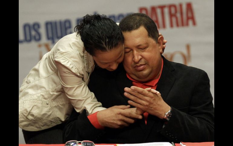 Internacional | Familia, amigos y seguidores lo despidieron de manera emotiva Chávez recibe emotiva despedida previa a viaje médico a Cuba El presidente de Venezuela pidió a sus simpatizantes hacer caso omiso del laboratorio mental que se ejerce desde Estados Unidos para debilitarlo en las elecciones Por: AP 23 de febrero de 2012 - 21:11 hs El presidente de Venezuela Hugo Chávez con su hija Rosa en una emotiva despedida antes de su viaje a Cuba. AP / CARACAS, VENEZUELA (23/FEB/2012).-Ante la proximidad de una cirugía que lo alejará del país en medio de la campaña electoral, el presidente Hugo Chávez buscó el jueves mostrarse fuerte físicamente, reavivó críticas a sus adversarios políticos y recibió un emotivo respaldo de sus seguidores. Chávez, quien busca una tercera reelección y que por vez primera estará alejado físicamente de su electorado por estar obligado a someterse a una nueva cirugía, prometió a sus partidarios regresar vitalizado para enfrentar una dura contienda. El líder izquierdista viajará el viernes a La Habana, Cuba, donde se someterá a una nueva operación por una "lesión" que apareció en el mismo lugar donde le fue extraído un tumor canceroso hace ocho meses. En esta ocasión, a diferencia de su primera intervención quirúrgica en junio del 2011, "vamos con calma, mejor preparados, físicamente, espiritualmente y nosotros vamos a enfrentar esa nueva batalla... vamos a salir bien parados", dijo Chávez en un mensaje a la nación transmitido por radio y televisión Tras una larga reunión de gabinete transmitida también al país, el presidente se desplazó al Teatro Teresa Carreño a fin de encabezar un acto político de apoyo organizado por simpatizantes. En esa ceremonia juramentó al comando de campaña electoral con miras a los comicios generales del 7 de octubre. "Todo el pueblo venezolano; esto (el teatro) está pleno, desbordado de pasión, de frenesí... no hay espacio para la tristeza ni para el dolor", expresó el gobernante. El teatro, ubicado en el centro de Caracas, estaba abarrotado por unas 2.000 personas que ovacionaron repetidamente al líder izquierdista. Muchos de sus partidarios, en particular los más jóvenes, vestían camisetas en las que se podía leer: "Hugo Chávez, 2013-2019", y gritaban consignas como: "Y no se va y no se va, el comandante Chávez no se va, se queda, se queda hasta el 2030". El comando estará dirigido por Jorge Rodríguez, actual alcalde de uno de los municipios que componen Caracas y ex presidente del Consejo Nacional Electoral, dijo Chávez desde la mesa de mantel rojo en la que estaba sentado. El comando electoral tendrá la responsabilidad de promover la campaña de Chávez, quien busca en octubre su tercera reelección luego de 13 años en el poder. En medio del acto, un niño corrió hacia la tarima y Chávez lo recibió con besos y lo sentó sobre la mesa frente a él. Chávez comenzó a leer una carta que el niño le entregó escrita por su madre, una barrendera llamada Maribel, madre de tres hijos y sin casa propia, según dijo el mandatario. El presidente anunció previamente durante la larga cadena por radio y televisión que el viernes por la tarde viajará a Cuba, para lo cual fue autorizado por el Legislativo en la jornada. Un estremecedor silencio embargó el teatro cuando el presidente preguntó al niño por su hermano y el chico sólo respondió en el micrófono usado por el jefe de Estado: "lo mataron". El mandatario guardó un breve silencio y luego encomendó a uno de sus ministros atender a la familia del pequeño y darle casa, sin mencionar el tema del hermano muerto. Según Chávez, al someterse el fin de semana pasado a controles médicos en La Habana, los especialistas le detectaron una "lesión" que es el objeto de la nueva cirugía. Dijo que pasará su post operatorio en La Habana, pero "cuando los médicos me den luz verde me vengo... que nada se detenga, más bien que aceleremos" los programas de gobierno. Lanzó varios mensajes de tinte electoral, descalificando a sus opositores como "la burguesía apátrida" que aspira a retornar al gobierno en las elecciones de octubre. Pero "pase lo que pase... vamos a ganar por 'knockout''', indicó Chávez, de 57 años, quien lucia sonriente, bromeaba y gesticulaba constantemente. El presidente sostiene que su gobierno es el único que ha atendido a los sectores más pobres, aunque por años antes de su mandato los servicios públicos han estado subsidiados, y elude referirse a temas como la alta criminalidad que afecta a los venezolanos. Chávez dedicó buena parte de la jornada a entregar las últimas instrucciones públicas y directas a sus colaboradores antes de salir a Cuba para su operación. Lo hizo en el marco de una intervención televisiva de más de cuatro horas desde la casa de gobierno y que fue parte de un gabinete de ministros donde ordenó a sus colaboradores seguir la construcción de miles de viviendas, entre otros programas. Chávez puso fin al acto al pedir a sus seguidores que ignoren rumores sobre su salud y versiones de enfrentamientos entre sus partidarios. "Que nadie sea víctima de la guerra psicológica que viene desde allá, de los laboratorios imperialistas", manifestó. "Esas campañas se van a intensificar tratando de debilitar al movimiento revolucionario, tratando de sembrar cizaña entre nosotros", comentó. "En estos días que vienen no se extrañen que surjan documentos forjados, supuestas grabaciones. 'No, que Chávez designará a Adán (su hermano) como su sucesor; pero resulta que Elías (Jaua, su vicepresidente) no lo acepta'... ustedes verán de todo y oirán de todo porque la burguesía sabe... con todos sus medios de comunicación nacionales (e) internacionales...su CIA, Pentágono y Casa Blanca, ellos saben que no nos van a ganar las elecciones del 7 de octubre", acotó. El mandatario no ha delegado funciones y durante su exposición sólo pidió repetidas cuentas a su vicepresidente El