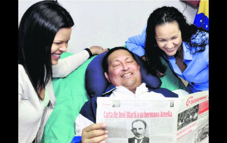 Internacional | Henrique Capriles dice que el Gobierno miente Chávez, sin voz y en cama El presidente venezolano está vivo, pero como había anticipado el diario español ''ABC'', no puede hablar Por: AP 16 de febrero de 2013 - 00:36 hs CARACAS, VENEZUELA (16/FEB/2013).- El comandante vive; apareció 68 días después del viaje a Cuba, para operarse de un cáncer. Las fotos del sonriente Hugo Chávez desde su lecho de enfermo suscitaron alegría en seguidores del presidente, aunque el opositor Henrique Capriles lo consideró una “burla”. Chávez aparece en cuatro fotografías acompañado por sus hijas Rosa Virginia y María Gabriela y sosteniendo en sus manos el diario cubano Granma del día anterior. Las imágenes dan la razón al diario español ABC, que en dos ocasiones publicó que Chávez perdió la voz. El Gobierno venezolano informó que, debido a una cánula traqueal, temporalmente no habla. Y agrega que todavía presenta “cierto grado de insuficiencia respiratoria”. Esto mereció la réplica del ex candidato presidencial Capriles, quien afirmó que “hace unos días los mentirosos (las autoridades) decían que hablaban (con Chávez). Ahora dicen que no puede hablar”. Temas América Latina Venezuela Hugo Chávez Recibe las últimas noticias en tu e-mail Todo lo que necesitas saber para comenzar tu día Registrarse implica aceptar los Términos y Condiciones