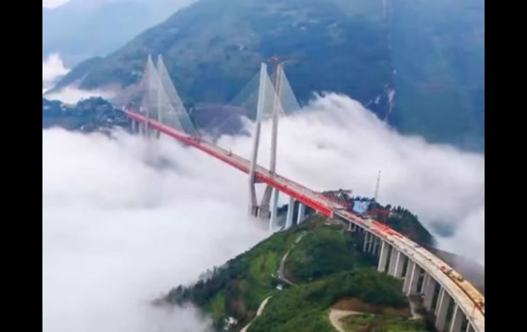 BEIJING, CHINA (29/DIC/2016).- China abrió hoy al tráfico vehicular el puente Beipanjiang, en la sureña provincia de Guizhou, el cual cruza entre montañas escarpadas a una altura equivalente a un edificio de 200 pisos, para convertirse en el más alto del mundo. Este nuevo viaducto en el sur chino, que se extiende a lo largo de mil 341 metros, finalmente fue abierto a la circulación después de tres años de construcción sobre el valle Beipanjiang, una maravilla de la arquitectura y la ingeniería, destacó la prensa local. "Elevado por encima de un valle, el Beipanjiang de 565 metros de alto que conecta a las sureñas (provincias) Guizhou y Yunnan, fue abierto al tráfico este jueves", precisó la agencia china de noticias Xinhua en su cuenta de Twitter. Se trata de un puente en suspensión que es parte de una extensa carretera que une a las ciudades de Hangzhou, en la oriental provincia de Zhejiang, y de Ruili, en Yunnan, y acortará el tiempo de viaje entre los dos lugares en una hora y media de las actuales cinco horas. Su construcción comenzó en 2013 y tuvo un costo estimado de alrededor de 143 millones de dólares. La provincia de Guizhou ya es hogar de siete de los 10 puentes más altos del país, y el Beipanjiang se suma a ellos pero debido a la altura en que se encuentra arrebató el título al puente del río Sidu, en la provincia de Hubei. China ha completado muchas hazañas notables de la ingeniería en los últimos años, ahora otro hito ha sido aprobado en el campo de la construcción del puente, subrayó la televisión central de China, CCTV.
