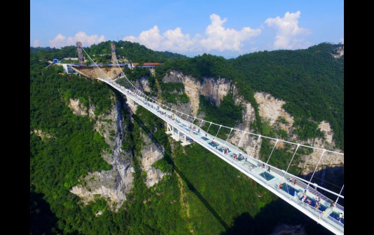 PEKÍN, CHINA (20/AGO/2016).- China abrió hoy al público el puente de cristal más alto y largo del mundo, de 430 metros de longitud y a 300 de altura, en el espectacular parque natural de Zhangjiajie, lugar que inspiró las Montañas Aleluya de la película Avatar.Diseñado por el arquitecto israelí Haim Dotan, el puente de seis metros de ancho une dos acantilados de la montaña Tianmen ("Puerta del Cielo") a través de 99 paneles con tres capas de cristal, y está preparado para que sobre él circulen hasta 800 personas a la vez.Los constructores probaron su resistencia recientemente, al hacer circular sobre él un camión de dos toneladas, e incluso se pidió a varias personas que golpearan su suelo con martillos y toda la fuerza posible, también con el fin de mostrar su dureza.La obra, que ha costado 22 mil 500 millones de yuanes (unos tres mil 400 millones de dólares), finalizó el pasado mayo, cinco meses después de lo previsto debido a las intensas lluvias caídas en la zona.Con este puente la provincia central de Hunan, muy visitada por turistas chinos al ser la tierra natal de Mao Zedong, busca con este proyecto aumentar el número de viajeros a una de sus mayores joyas naturales, el parque de Zhangjiajie.La bella mezcla de formas kársticas -más de tres mil columnas pétreas lo pueblan- con el verdor de los bosques subtropicales mereció ser declarado Patrimonio de la Humanidad por la Unesco en 1992 e inspiró a James Cameron para idear las montañas que en la película "Avatar" tienen idéntico aspecto, aunque en ese caso flotan en las nubes desafiando las leyes de la física.Caminar por el puente transparente puede ser la forma más parecida a "flotar" sobre esas montañas, tal y como se aprecia en la película, una experiencia no apta para personas con vértigo.Un lugar que los responsables de turismo, con el afán de ir más allá, planean ofrecer para hacer "puenting".El puente de Zhangjiajie no es la primera estructura de cristal que se edifica en China, donde este tipo de atracciones se han hecho muy populares.Ya existen cerca de una decena en zonas montañosas en un país donde cada provincia compite por atraer los cientos de millones de turistas internos que se mueven cada año por la geografía nacional.Dos de ellas se encuentran también en la Montaña Tianmen, aunque no son puentes sino pasarelas adosadas a acantilados: el llamado "Camino de la Fe", abierto en 2011, y el "Dragón Enroscado", a mil 500 metros de altura e inaugurado a principios de este mes.A las afueras de Pekín se abrió el pasado primero de mayo un mirador acristalado que sobresale 32 metros de un monte, situado a 400 metros de altura y ofrece una espectacular vista.Otra pasarela sobre un acantilado está en los montes Yuntai de la provincia central de Henan, pero fue clausurada poco después de su inauguración, en septiembre de 2015, al descubrirse grietas en el cristal -al parecer causadas por objetos arrojados por turistas- lo que causó cierto pánico.Estas estructuras no sólo se circunscriben a zonas naturales de China. En julio pasado se abrió en la Torre Jinmao, uno de los rascacielos más altos de Shanghái, otra pasarela de cristal desde la que los visitantes pueden caminar por el exterior del edificio en su último piso, el número 88.