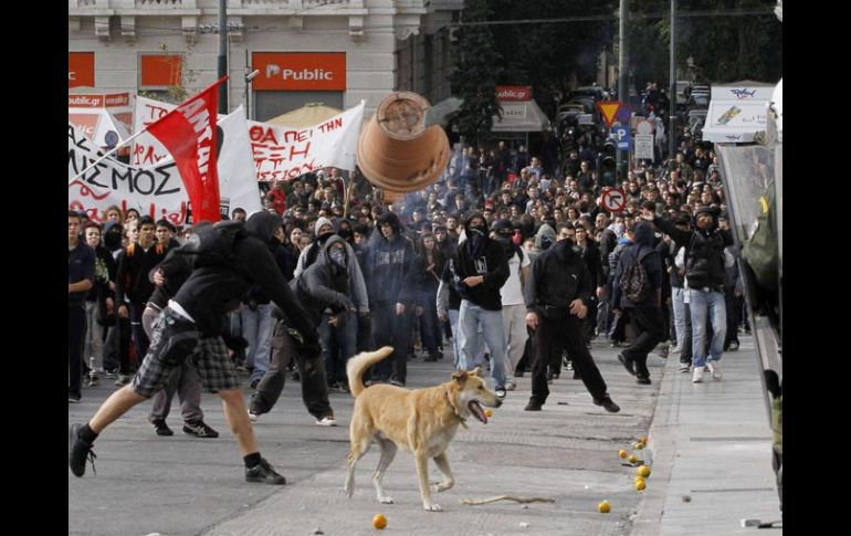 Internacional | Protestantes lanzan piedras y cócteles molotov durante los enfrentamientos Choque entre jóvenes y antimotines deja cinco heridos en Grecia Realizan manifestación para recordar asesinato de un jóven en manos de un agente de Atenas Por: EL INFORMADOR 7 de diciembre de 2010 - 01:37 hs Estudiantes lanzan piedras y macetas a policías en un edificio del Gobierno en el Centro de Atenas. AP / ATENAS, GRECIA (07/DIC/2010).- Jóvenes encapuchados se enfrentan a policías durante una manifestación para recordar el segundo aniversario del asesinato de un adolescente a manos de un agente en Atenas, lo que generó los peores disturbios que Grecia ha visto en décadas. Alrededor de cuatro mil jóvenes marcharon hacia el Parlamento, los cuales lanzaron piedras y cócteles molotov durante los enfrentamientos. Al menos cinco personas resultaron heridas, incluido un peatón que fue golpeado en la cara por una piedra. La policía arrestó a más de 40 adolescentes. La manifestación que duró más de seis horas, en la que participaron grupos radicales provocó que la policía cerrara el paso a los vehículos. Temas Europa Manifestaciones en el mundo Grecia Recibe las últimas noticias en tu e-mail Todo lo que necesitas saber para comenzar tu día Registrarse implica aceptar los Términos y Condiciones