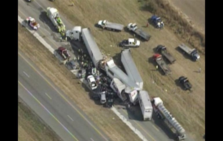 Internacional | Reportan 51 heridos por accidente que involucró decenas de vehículos Choque múltiple deja dos muertos en Texas Hay decenas de heridos por accidente que involucró cerca un centenar de vehículos y obligó a cerrar la carretera interestatal 10 Por: AP 22 de noviembre de 2012 - 19:05 hs Vista aérea del choque en la carretera en Texas. AP - Click2houston.com / BEAUMONT, ESTADOS UNIDOS (22/NOV/2012).- Dos personas murieron y decenas resultaron heridas en un choque múltiple que involucró decenas de vehículos que se apilaron unos sobre otros y obligó a cerrar la carretera interestatal 10 en el sudeste de Texas mientras las autoridades se apresuraban a sacar a los sobrevivientes de kilómetros de fierros retorcidos. La televisora KFDM-TV reportó que el accidente ocurrió alrededor de las 8 de la mañana del jueves en medio de una espesa neblina en la Interestatal 10 al suroeste de Beaumont, unos 130 kilómetros (80 millas) al este de Houston. Directivos del servicio Acadian de Ambulancias dijeron a KFDM que por lo menos 51 personas fueron conducidas a hospitales de la zona con heridas severas. No se conoció de inmediato cómo comenzaron a apilarse los vehículos, pero Rod Carroll, oficial de policía en el condado de Jefferson, dijo que la neblina era tan densa que las autoridades no supieron de inmediato que estaban lidiando con varios accidentes. "Es catastrófico", dijo Carroll. "Tengo vehículos sobre vehículos". La carretera permanecerá cerrada en dirección este la mayor parte del jueves. La agente Stephanie Davis del Departamento de Seguridad Pública dijo que dos personas en una camioneta deportiva murieron en el accidente. Agregó que por lo menos 100 automóviles y camiones chocaron en medio de una espesa niebla. Carroll agregó que los conductores que no estaban heridos trataron de ayudar mientras las autoridades se abrían paso en medio de los fierros retorcidos. "Sólo es gente ayudando gente", dijo el oficial. "Lo más importante de este día es cómo los viajeros nos ayudaban cuando estábamos abrumados, sentados y sosteniendo, poniendo presión sobre personas que estaban lastimada". Temas Norte América Accidentes en el mundo Estados Unidos Texas Lee También Difícil cierre para el peso; rompe el techo de las 19 unidades por dólar ¿Quién ganará el partido entre las América y Chivas? Esto dice la IA Choque en la colonia Aldama Tetlán deja dos lesionados México se prepara para recibir un nuevo frente frío este sábado Recibe las últimas noticias en tu e-mail Todo lo que necesitas saber para comenzar tu día Registrarse implica aceptar los Términos y Condiciones