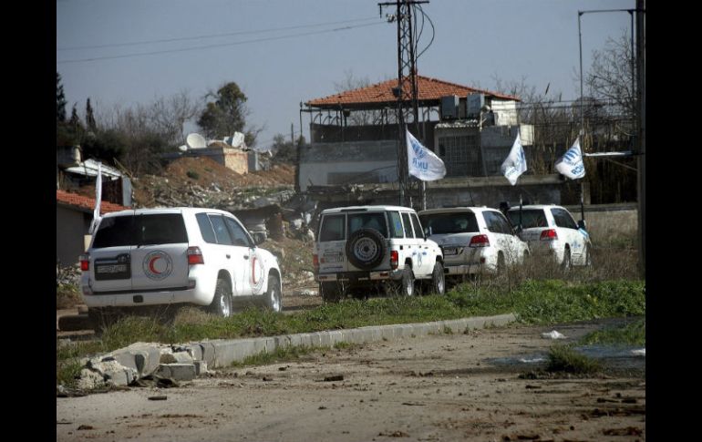 Talal Barrazi, gobernador de la provincia de Homs, declaró a la televisora libanesa Al-Mayadeen que el ataque ocurrió a finales de la tarde el sábado y que los camiones fueron afectados por dos bombas a la orilla de la carretera y un morterazo del lado rebelde.Sin embargo, Ahmad al-Qusair, activista de Homs, negó la existencia de bombas en la carretera y dijo que el convoy fue atacado con morteros disparados por las fuerzas del gobierno.Barrazi declaró más tarde a la televisión estatal siria que dos camiones pudieron llegar más temprano el viernes a vecindarios controlados por los rebeldes.Al-Mayadeen también reportó que dos camiones con alimentos pudieron entrar a territorio rebelde el sábado.Por su parte la televisión estatal informó que cuatro miembros de la Media Luna Roja siria fueron heridos por fuego de los rebeldes en la zona, pero no ofreció más detalles.La Media Luna Roja siria informó en su página de Facebook que sus miembros pudieron entregar 250 paquetes de alimentos y 190 paquetes con detergente y medicinas en el vecindario de Hamidiyeh a pesar de ser atacados con fuego de mortero. La organización agregó que uno de sus miembros fue herido de levedad y que dos camiones sufrieron daños.No quedó claro de inmediato por qué los medios estatales sirios dijeron que cuatro paramédicos fueron heridos pero la Media Luna Roja indicó que fue sólo uno. Barrazi dijo que unos 100 civiles esperaban ser evacuados de las áreas rebeldes todavía no habían llegado. El viernes, 83 niños, mujeres y ancianos en sillas de rueda fueron evacuados de Homs, los primeros en salir de la zona en varios meses, informó la ONU.Las fuerzas sirias leales al presidente Bashar Assad han impedido la entrada de alimentos y asistencia médica a partes de la ciudad controladas por los rebeldes desde hace más de un año, lo que ha afectado gravemente a cientos de civiles atrincherados en esas zonas. Hubo un acuerdo de tregua de tres días para permitir la evacuación de algunos civiles y la entrada de alimentos.Al-Mayadeen transmitió imágenes en vivo desde la Plaza del Reloj de la ciudad en que se vieron dos camiones blancos con distintivos de la Media Luna Roja siria cuando regresaban después de no poder cumplir su misión. El reportero de la estación en la zona dijo que una bala penetró el radiador de uno de los camiones."Después que los vehículos avanzaron unos 200 metros explotaron dos bombas a la orilla de la carretera y cuando siguieron avanzando cayó un mortero disparado desde la zona de Hamadiyeh", dijo Barrazi refiriéndose al vecindario controlado por los rebeldes.El sábado más temprano, un funcionario sirio dijo que había habido combates y que un mortero cayó cerca de personal de la ONU. Un activista dijo que los combates comenzaron cuando fuerzas del gobierno dispararon 11 cohetes hacia Hamidiyeh. El funcionario habló a condición de no ser identificado porque no estaba autorizado a hablar con los reporteros.Valerie Amos, jefa de los servicios humanitarios de la ONU, dijo en un comunicado el sábado por la noche que estaba decepcionada de que la tregua humanitaria de tres días se haya roto y que hayan atacado a los socorristas.Por su parte, el Observatorio Sirio de Derechos Humanos, con sede en Gran Bretaña, dijo que dos personas perdieron la vida y otras fueron heridas en un ataque contra vecindarios controlados por los rebeldes del que los vecinos culparon a fuerzas del gobierno.Homs fue una de las primeras zonas que se levantó contra el gobierno del presidente Assad en 2011 y ha sido golpeada duramente en la guerra. Durante los últimos meses el gobierno ha recuperado el control sobre la mayor parte de la ciudad, con excepción de unos cuantos vecindarios en el centro histórico. Una coalición de activistas exiliados sirios dijo el sábado que temen que el acuerdo se use como un "preludio a la destrucción de la ciudad por parte del régimen".