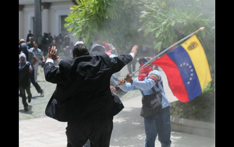 CARACAS, VENEZUELA (05/JUL/2017).- Cinco diputados opositores fueron heridos por seguidores del presidente Nicolás Maduro que irrumpieron violentamente este miércoles en la sede del Parlamento venezolano, donde se realizaba una sesión especial por el día de la independencia, informaron legisladores.Julio Borges, presidente de la Asamblea de mayoría opositora, reportó en Twitter que en el "ataque" resultaron heridos los diputados Armando Armas, Américo de Grazia, Nora Bracho, Luis Carlos Padilla y Leonardo Regnault.Al menos dos trabajadores de la cámara también sufrieron lesiones, reportaron otros diputados.Tres legisladores resultaron con cortes en la cabeza. Américo de Grazia "tuvo convulsiones" y fue trasladado en ambulancia a un centro médico, señaló su colega Juan Guaidó a periodistas, indicando que los agresores tenían "piedras, palos y cuchillos".Borges atribuyó la incursión a "colectivos", grupos civiles oficialistas que según la oposición son armados por el gobierno.Cerca de un centenar de personas, algunas encapuchadas, con palos y tubos, y vestidas de rojo, entraron a los jardines del Palacio Legislativo y detonaron bombas de estruendo, desatando el caos, constató un equipo de la AFP."Esto no duele más que ver todos los días cómo perdemos el país", comentó Armas tras subir a una ambulancia con la cabeza cubierta por vendas ensangrentadas.Los partidarios de Maduros se encontraban frente al edificio legislativo en un "plantón" de seis horas en rechazo a la oposición, pero durante un receso de la sesión solemne forzaron el portón y lograron llegar hasta los pasillos y entradas a los salones.Periodistas que cubrían el acto fueron obligados por encapuchados a dejar de grabar y tomar fotografías, y a salir del Palacio Legislativo. Uno de los hombres portaba un arma de fuego."El gobierno siempre recurre a la violencia", manifestó el diputado opositor Stalin González. "Vamos a seguir enfrentado a estos salvajes", agregó su colega Simón Calzadilla.El incidente se produjo mientras Maduro encabezaba un desfile militar con miles de efectivos en el paseo de Los Próceres, en el complejo Fuerte Tiuna, en Caracas.Más temprano, el vicepresidente de Venezuela, Tareck El Aissami, lideró un sorpresivo acto en el hemiciclo junto con el ministro de Defensa y jefe de la Fuerza Armada, general Vladimir Padrino López, miembros del gabinete y partidarios chavistas vestidos de rojo, para conmemorar la independencia.En el acto, El Aissami llamó "a los excluidos por el modelo capitalista y por esta clase política apátrida" (oposición) a acudir este miércoles al Parlamento a refrendar su compromiso con la revolución.La crisis política venezolana se encuentra en una fase de alta tensión por protestas opositoras que dejan 91 muertos en tres meses, y debido a la convocatoria de Maduro a una Asamblea Constituyente.Pese a la incursión, la mayoría opositora en el Parlamento formalizó su convocatoria, para el 16 de julio, a un plebiscito simbólico que rechazará la Constituyente, cuyos integrantes serán elegidos el 30 de julio.