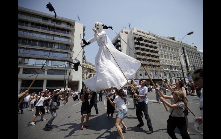 Internacional | Descartan cambios con nuevo ministro de Finanzas Cinco mil griegos rechazan las medidas de austeridad Un sondeo revela que 47.5% de los encuestados querían que el Parlamento rechazara el paquete de reformas y que se celebraran elecciones Por: EL INFORMADOR 19 de junio de 2011 - 04:40 hs Activistas franceses manifiestan su apoyo a los griegos marchando con un títere que representa a la Justicia. AP / ATENAS, GRECIA (19/JUN/2011).- Miles de griegos marcharon hasta el Parlamento en Atenas un día después de que el primer ministro George Papandreu prometiera continuar con la campaña de austeridad a la que según un sondeo se opone la mitad del país. En una iniciativa para reducir el disentimiento en su Partido Socialista, Papandreu removió el viernes al ministro de Finanzas, George Papaconstantinou, autor de un nuevo programa de austeridad de cinco años que ha desatado semanas de protestas. El recambio coincidió con la promesa de Francia y Alemania de continuar financiando a Atenas, una decisión que podría dar a Grecia y a sus aliados de la zona euro más tiempo para evitar una caótica cesación de pagos, incluso aunque existan dudas sobre su solvencia a largo plazo. La Unión Europea y el Fondo Monetario Internacional (FMI) impusieron las reformas como condición para un nuevo rescate financiero estimado en 170 mil millones de dólares, el cual deberá ser financiado por Grecia a partir de 2014. Alrededor de cinco mil manifestantes del grupo comunista PAME marcharon hacia la plaza Syntagma de Atenas y gritaron consignas como “las medidas de austeridad nos están matando”. Activistas franceses también actuaron con un títere de tres metros que representaba a la Justicia ensangrentada bailando al ritmo de los tambores, en un gesto de solidaridad con los manifestantes griegos que han acampado en la plaza durante tres semanas. “¿Qué ha cambiado con la renovación de gabinete? Nada”, dijo Costas, estudiante de 22 años que ha estado acampando en la plaza desde comienzos de mes. “No pensamos irnos a menos que retiren las medidas”. Temas Europa Manifestaciones en el mundo Grecia Recibe las últimas noticias en tu e-mail Todo lo que necesitas saber para comenzar tu día Registrarse implica aceptar los Términos y Condiciones