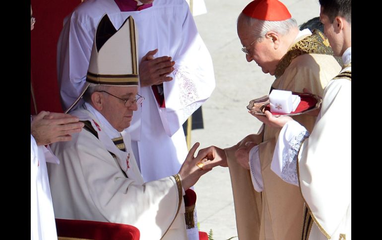 Internacional | Ambos son símbolos del inicio del papado Colocan a Francisco el anillo del Pescador y el palio El anillo del Pescador será usado por el Papa Francisco hasta su muerte o renuncia Por: EFE 19 de marzo de 2013 - 02:06 hs CIUDAD DEL VATICANO (19/MAR/2013).- El cardenal protodiácono, Jean Louis Tauran, colocó al papa Francisco el Palio, antigua insignia episcopal, y el decano, Angelo Sodano, el anillo del Pescador, símbolos del pontificado, con lo que comienza el papado del argentino Jorge Mario Bergoglio, de 76 años. El palio es una estola confeccionada con lana de cordero que simboliza al Salvador, que encontrando al hombre como la oveja descarriada lo carga a sus espaldas. Mide 2,60 metros de largo y 11 centímetros de ancho. Ha sido tejido con lanas de ovejas y corderos y sobre el mismo han sido colocadas cinco cruces rojas, que recuerdan las cinco llagas de Cristo, con alfileres, que recuerdan los clavos de la cruz. Acaba con unos flecos negros, que simboliza la pezuña del cordero. El anillo del Pescador, en plata dorada, lleva inciso al Apóstol Pedro con las llaves y sujetando las redes para pescar. Francisco lo llevará hasta su muerte o renuncia, cuando el camarlengo se lo retire y lo machaque o anule para que nadie pueda usarlo y a la vez para simbolizar el final del Papado. Después se realizó el rito de la obediencia. Seis cardenales -dos de la orden de los obispos, dos de la de los presbíteros y dos de la de los diáconos- en nombre de los 207 que conforman el Colegio Cardenalicio, le mostrarán obediencia. Se trata de los purpurados Giovanni Battista Re y Tarcisio Bertone por la orden de los obispos, Joachim Meisner y Ricardo Vidal por la de los presbíteros y Renato Martino y Francesco Marchisano por la de los diáconos. La misa, la de la festividad de San José, patrón de la Iglesia, la oficia el papa Francisco y la concelebran todos los cardenales. También ofician el secretario del Colegio Cardenalicio, Lorenzo Badisseri; el prepósito de la Compañía de Jesús, el español Adolfo Nicolás, y el General de los Franciscanos, el también español Javier Rodríguez Carballo. Las lecturas se harán en inglés y español, el Evangelio en griego y la comunión la impartirán 500 sacerdotes. Francisco pronunciará la homilía en italiano y no impartirá la comunión. Al final de la ceremonia se cantará un Te Deum de acción de gracias y no habrá ángelus. Temas Europa Ciudad del Vaticano Iglesia Católica Papa Francisco Lee También Marchas CDMX: Estas son las afectaciones viales de hoy, 13 de octubre Pronóstico de lluvia hoy, 13 de octubre en CDMX ¿Sabrá el gobernador? Clima en Ciudad de México hoy: el pronóstico para el lunes 13 de octubre de 2025 Recibe las últimas noticias en tu e-mail Todo lo que necesitas saber para comenzar tu día Registrarse implica aceptar los Términos y Condiciones