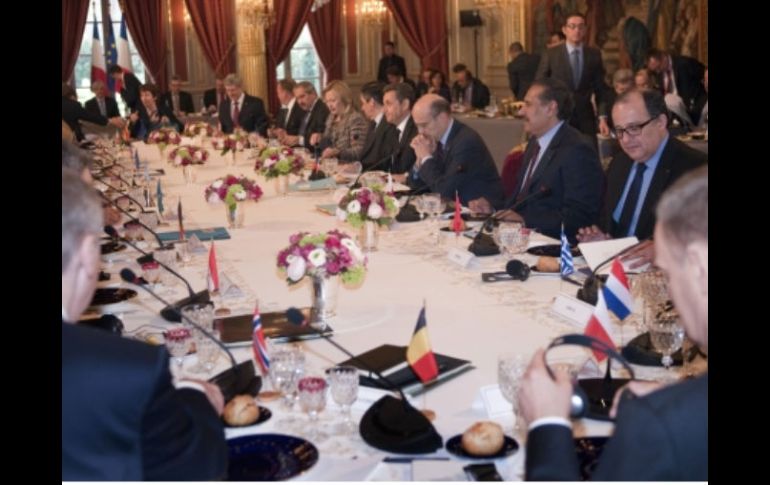 Internacional | Se anuncia que no asistirá ningún representante de la Unión Africana Comienza Cumbre de París sobre la resolución de la ONU contra Libia El día de hoy dio inicio la cumbre para debatir la aplicación de la resolución del Consejo de Seguridad sobre la intervención militar en el país africano Por: EFE 19 de marzo de 2011 - 06:54 hs Francia prevé inminente intervención militar en LibiaGadhafi promete un infierno para quien lo ataque PARÍS, FRANCIA (19/MAR/2011).- La Cumbre de París convocada por el presidente francés, Nicolas Sarkozy, para debatir la aplicación de la resolución del Consejo de Seguridad sobre la intervención militar en Libia comenzó hoy poco después de las 12:30 GMT. Fuentes del Palacio del Elíseo, presidencia de la República francesa confirmaron a Efe el inicio de la reunión. Efe pudo constatar que el último de los participantes en llegar fue el primer ministro griego, Yorgos Papandréu, al que ya no recibió Sarkozy en la escalinata del patio del Elíseo, como sí hizo con quienes le antecedieron. Las fuentes presidenciales confirmaron que no asiste, en contra de lo que se había anunciado, ningún representante de la Organización para la Unidad Africana (OUA). En la reunión participan los primeros ministros de Canadá, Stephen Harper; de Reino Unido, David Cameron, y de Bélgica, Yves Leterme, la secretaria de Estado de EU, Hillary Clinton; la canciller federal alemana, Angela Merkel, y el jefe del Gobierno español, José Luís Rodríguez Zapatero. El presidente del Gobierno español viajó a París acompañado por el jefe del Estado Mayor de la Defensa, general José Julio Rodríguez También están en el Elíseo la alta Representante de Política Exterior de la Unión Europea, Catherine Ashton, el presidente del Consejo Europeo, Herman van Rompuy, el secretario general de la ONU, Ban Ki Moon, y el secretario general de la Liga Árabe, Amro Musa. La lista de asistentes incluye a los primeros ministros de Dinamarca, Lars Lokke Rasmussen, y de Grecia, Yorgos Papandréu; al jeque Abdalá bin Zayed Al Nahyan de los Emiratos Árabes Unidos y al ministro iraquí de Exteriores, Mahmud Zebari. En la relación les siguen los primeros ministros de Italia, Silvio Berlusconi; de Noruega, Jens Stoltenberg, y de Holanda, Mark Rutte, así como los ministros de Exteriores de Jordania, Naser Joudeh, y de Marruecos, Taeb Fassi Fihri. También asisten el presidente de Polonia, Donald Tusk, y el primer ministro catarí, Hamad bin Jaber Al Thani. Temas Paris África ONU Libia Lee También Alertan por el aumento de ejecuciones en Irán: ONU ONU concluye recopilación de información sobre desapariciones en México Pamela Anderson da de qué hablar con su nuevo look Elefante se hace viral tras atacar a turistas en un safari | VIDEO Recibe las últimas noticias en tu e-mail Todo lo que necesitas saber para comenzar tu día Registrarse implica aceptar los Términos y Condiciones