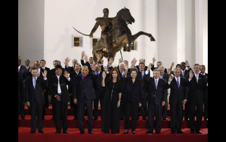 Internacional | Inauguran la Cumbre constitutiva de la Comunidad de Estados Latinoamericanos y Caribeño Comienzan la creación del Celac Jefes de Estado de América Latina Inaugura la Cumbre constitutiva de la Comunidad de Estados Latinoamericanos y Caribeño Por: EL INFORMADOR 3 de diciembre de 2011 - 03:21 hs CARACAS, VENEZUELA (03/DIC/2011).- Una treintena de jefes de Estado y Gobierno inauguraron ayer la Cumbre constitutiva de la Comunidad de Estados Latinoamericanos y Caribeños (CELAC), que nace como la “semilla de la América nueva”, afirmó el presidente de México, Felipe Calderón, encargado de abrir la III Cumbre de América Latina y el Caribe de Integración y Desarrollo (CALC), elegida para dar a luz un nuevo mecanismo de integración que excluye a Estados Unidos y Canadá El presidente de Venezuela, Hugo Chávez, defendió con ahínco el nuevo foro y llamó a los 33 países que lo integran a avanzar “sin vacilación” por el camino de la unidad. “Vacilar sería perdernos. Avancemos sin vacilación que éste es el camino, la unidad, la unidad, la unidad”, sentenció Chávez, quien encabeza como anfitrión. En un discurso desprovisto de protocolo y que glosó con citas de varios libros, Chávez rindió homenaje al fallecido expresidente argentino Néstor Kirchner, al líder cubano Fidel Castro y al exmandatario brasileño Luiz Inacio Lula Da Silva. Temas América Latina Venezuela Celac Lee También Chivas y América calientan en redes el Clásico Nacional de la Fecha FIFA Kevin Álvarez busca aprovechar su oportunidad con la Selección Urge un “hasta aquí” La crisis política de Maduro en Venezuela Recibe las últimas noticias en tu e-mail Todo lo que necesitas saber para comenzar tu día Registrarse implica aceptar los Términos y Condiciones