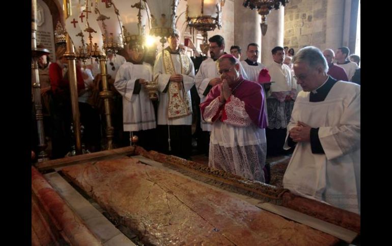 Internacional | Ortodoxos y católicos efectuan ceremonias en Iglesia del Santo Sepulcro Cristianos celebran la Pascua en Jerusalén Los protestantes hicieron sus propias ceremonias de Pascua afuera de la amurallada Ciudad Antigua Por: AP 24 de abril de 2011 - 17:56 hs Piedra de la Unción, donde cristianos creen que el cuerpo de Jesús fue preparado para el entierro. REUTERS / JERUSALEN, ISRAEL (24/ABR/2011).-Cristianos de diversas partes del mundo celebran el domingo la Pascua en Jerusalén, para conmemorar el día de la resurrección de Jesús en la ciudad santa hace dos milenios. Cristianos ortodoxos y católicos efectuaron sendas ceremonias en la Iglesia del Santo Sepulcro, la cual es venerada por ser el lugar que la tradición marca como el sitio de la crucifixión, entierro y resurrección de Jesús. Los calendarios de las diferentes iglesias coinciden este año. Los clérigos en ropajes ornamentados realizaron procesiones por el antiguo recinto, donde se coordinan cuidadosamente las ceremonias de cada fe para evitar conflictos. Los protestantes hicieron sus propias ceremonias de Pascua afuera de la amurallada Ciudad Antigua, en la tumba del jardín, la cual algunos consideran la sepultura de Jesús. Los oradores hablaron en inglés y hubo bandas de rock que acompañaron a los feligreses con canciones. Temas Medio Oriente Jerusalén Israel Recibe las últimas noticias en tu e-mail Todo lo que necesitas saber para comenzar tu día Registrarse implica aceptar los Términos y Condiciones