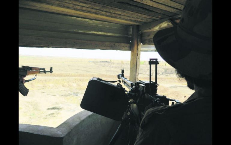 KARAKOSH, IRAQ (17/JUL/2017).- Desde el puesto de vigilancia número cinco, situado en el Sureste de la casi vacía localidad iraquí de Karakosh, un grupo de cristianos de las Unidades de Protección de la Llanura de Nínive vigila la extensa planicie que se extiende enfrente, para evitar cualquier ataque yihadista.“Desde aquí observamos las afueras y estamos preparados para afrontar cualquier peligro o cualquier intento de infiltración”, indica Ivan Elian Jader, un combatiente de esta fuerza armada cristiana junto a una ametralladora Doshka del calibre 12.5, que apunta amenazante a un horizonte sobre el que el Sol cae a plomo.Jader y sus compañeros de armas hacen guardias de siete días antes de ser relevados. Durante los combates, explica el uniformado Ihab Abadi, quien agregó que muchos estuvieron tres meses seguidos en el frente sin descanso. La ciudad de Karakosh, capital de la comarca de Al Hamdaniya, donde vivía la mayor comunidad cristiana de Iraq antes de la irrupción del grupo Estado Islámico (EI) en el verano de 2014, tenía 55 mil habitantes.