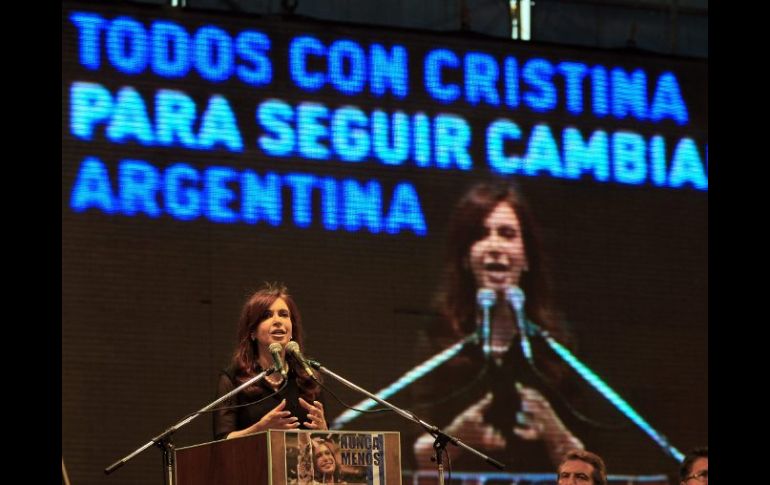Internacional | En últimas semanas se intensificaron presiones para que Fernández asuma la postulación Cristina Fernández posterga postura sobre su reelección en Argentina A partir del fallecimiento de su esposo, el pasado octubre, Fernández se convirtió en la primer candidata del oficialismo Por: NTX 11 de marzo de 2011 - 17:13 hs El canto masivo repetía: 'para Cristina, la reelección'. EFE / BUENOS AIRES, ARGENTINA (11/MAR/2011).- La presidenta de Argentina, Cristina Fernández de Kirchner, encabezó hoy un magno acto político en el que volvió a evitar cualquier definición sobre su candidatura a la reelección en los comicios de octubre próximo. Cobijada por miles de simpatizantes y en un ambiente de campaña, Fernández de Kirchner conmemoró el 38 aniversario del triunfo electoral del líder peronista Héctor Cámpora, quien gobernó sólo durante 49 días. El acto se realizó en el estadio del club de futbol Huracán, y representó la primera movilización militante de la mandataria desde que quedó viuda el pasado 27 de octubre, cuando murió de manera sorpresiva su esposo y antecesor, Néstor Kirchner. Hasta ese momento, Kirchner lideraba las encuestas rumbo a las elecciones generales del próximo 30 de octubre, pero su fallecimiento convirtió a su esposa en la principal candidata del oficialismo. Durante la celebración política de este viernes se esperaba alguna definición de la presidenta, ya que en las últimas semanas se han intensificado las presiones para que asuma ya la postulación a un nuevo mandato. 'Para Cristina, la reelección', fue el canto masivo que más se coreó durante el evento, pero la mandatario ignoró los fervorosos pedidos y reconvirtió el acto en un homenaje a Kirchner. 'No está aquí la presidenta, sino la compañera de todos ustedes, quiero pedirles a todos que este acto de este 11 de marzo, sea en reacuerdo y homenaje a quien fuera mi compañero de toda la vida', convocó. Entre lágrimas, recordó las acciones de gobierno de Kirchner y lamentó que haya tenido que morirse para que hubiera una valoración como la que se dio en su multitudinario y público velorio. 'Cuántas cosas había hecho y qué poco se lo habían reconocido', dijo en un discurso que dirigió principalmente a los jóvenes, quienes se han vuelto en los principales defensores del modelo kirchnerista. Temas América Latina Argentina Cristina Fernández Lee También México vs Argentina • Momentos Destacados • Cuartos de Final • Mundial Sub-20 México vs Argentina: ¿Quién ganará el partido según la IA? "Chucky" Lozano reconoce que jugaría en Chivas o en América Dónde ver EN VIVO el México vs Argentina por el Mundial Sub-20 Recibe las últimas noticias en tu e-mail Todo lo que necesitas saber para comenzar tu día Registrarse implica aceptar los Términos y Condiciones