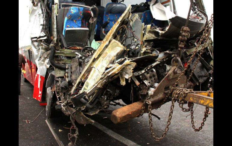 Internacional | Tres autobuses de pasajeros y un camión se impactaron al norte de Lima Cuádruple choque en Perú deja al menos 32 muertos Tres autobuses de pasajeros y un camión se impactaron al norte de Lima Por: EFE 23 de marzo de 2015 - 07:58 hs Al parecer uno de los camiones salió de su carrill y pegó a los otros. NTX / ARCHIVO LIMA, PERÚ (23/MAR/2015).- Al menos 32 personas murieron y otras 42 resultaron heridas en Perú al chocar tres autobuses de pasajeros y un camión a unos 270 kilómetros al norte de Lima, informó la Policía de Carreteras. "La suma de fallecidos que tenemos hasta el momento es de 32 muertos y 42 heridos, están en pleno reconocimiento (de las víctimas) en presencia del fiscal", declaró al Canal N de televisión el jefe de la Policía de Carreteras, Orfiles Bravo. En un primer momento, la Policía informó de que se habían recuperado los cuerpos de 22 fallecidos, aunque señaló que esa cifra podía incrementarse ante la magnitud del accidente. El choque múltiple se produjo hacia las 04:30 horas (09:30 GMT) a la altura del kilómetro 315 de la Panamericana y, según indicó Bravo, al parecer se originó cuando uno de los autobuses salió de su carril e impactó contra los otros dos autobuses y el camión que venían en sentido contrario. Agregó que se ha enviado dos helicópteros de la Policía hasta el hospital de Huarmey para trasladar a seis heridos graves hasta el hospital del puerto limeño del Callao. Hasta la zona llegaron ambulancias de las ciudades vecinas al lugar del accidente para trasladar a las decenas de heridos de diversa consideración hasta el hospital de Huarmey. Según el Canal N, la mayoría de las víctimas mortales eran miembros de la Iglesia Alianza Cristiana y Misionera del Perú, que retornaban en uno de los autobuses hacia la ciudad norteña de Chiclayo tras haber participado en una actividad en Lima. El ministro de Salud, Aníbal Velásquez, anunció a la emisora RPP Noticias que se ha activado la "alerta roja" en los establecimientos de salud de la zona para atender a la gran cantidad de heridos que ha dejado este accidente. Temas América Latina Accidentes en el mundo Muertes Perú Lee También Chivas viaja con ‘Chicharito’ y Robinho al amistoso ante América en Estados Unidos Estas son las bajas de Chivas para el próximo Clásico Nacional Chivas y América calientan en redes el Clásico Nacional de la Fecha FIFA Disparan contra grupo musical en pleno concierto en Perú | VIDEO Recibe las últimas noticias en tu e-mail Todo lo que necesitas saber para comenzar tu día Registrarse implica aceptar los Términos y Condiciones