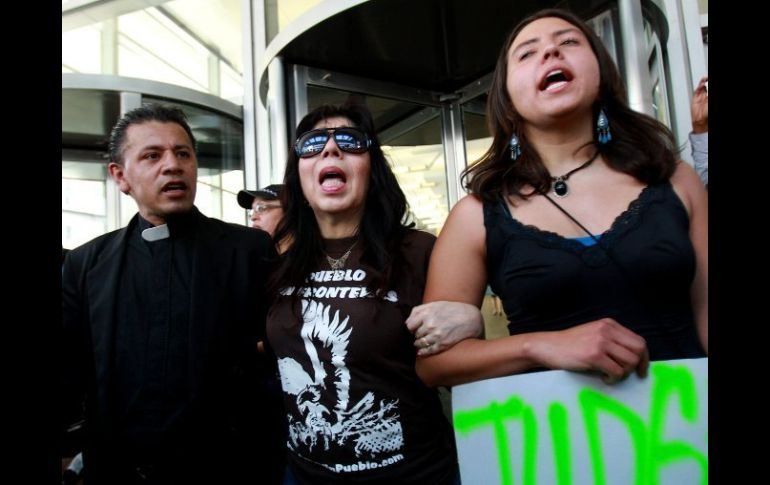 Internacional | Uno de los detenidos fue el sacerdote activista José Landaverde Cuatro detenidos deja protesta contra deportaciones en Chicago Uno de los detenidos fue el sacerdote activista José Landaverde, quien más temprano había encabezado una marcha de grupos pro inmigrantes desde el barrio mexicano La Villita Por: EFE 15 de mayo de 2012 - 21:41 hs El sacerdote activista José Landaverde (i), la activista Emma Lozano (c) y Crystal Vance Guerra (d). EFE / CHICAGO, ESTADOS UNIDOS (15/MAY/2012).- Por lo menos cuatro manifestantes fueron detenidos hoy al intentar bloquear la entrada de un edificio donde se ubican la corte de Inmigración y oficinas federales en el centro de Chicago, Illinois (EU), durante una protesta contra las deportaciones. Uno de los detenidos fue el sacerdote activista José Landaverde, quien más temprano había encabezado una marcha de grupos proinmigrantes desde el barrio mexicano La Villita. Los manifestantes habían anunciado un acto de desobediencia civil, con el posible ingreso forzado al edificio de oficinas, pero nadie lo intentó. En cambio, Landaverde y Emma Lozano, del Movimiento Sin Fronteras, se sentaron en la entrada del edificio y se negaron a cumplir el pedido policial de evacuar el lugar. Los dos fueron detenidos, al igual que otros dos manifestantes pertenecientes al movimiento Ocupa Chicago. La vigilancia en la puerta principal del edificio fue realizada por varios agentes de la policía de Chicago, mientras que desde la distancia la protesta fue seguida por agentes del Servicio de Protección Federal, sin intervenir. Unas 30 personas participaron en la marcha de alrededor de 10 kilómetros con carteles y cánticos de "el pueblo unido jamás será vencido", desde la Misión Nuestra Señora de Guadalupe, en la calle 26 de La Villita, hasta la esquina de Van Buren y Canal. La marcha fue encabezada por Landaverde, acompañado por representantes de organizaciones comunitarias. En el edificio donde se encuentra la corte les aguardaron unos 70 representantes de Ocupa Chicago y de otros grupos reunidos en esta ciudad para protestar contra la reunión de la OTAN a partir del viernes. Landaverde dijo que la intención era denunciar las "decisiones injustas e inhumanas" de los jueces de Inmigración, que "deportan a trabajadores y separan familias" sin respetar la disposición federal de dar prioridad a responsables de delitos graves. "Denunciamos el racismo que existe en el actual sistema migratorio y a los jueces racistas, en especial al juez Craig Serbe que toma decisiones inhumanas contra la población inmigrante", afirmó. Dijo que en el recrudecimiento de la acción contra los inmigrantes se designaron nuevos edificios para las cortes de Inmigración, y planes para construir cárceles para indocumentados, como el de la villa de Crete al sur de Chicago. El activista Jorge Mújica sostuvo que con esta marcha se iniciaba una campaña "contra los jueces que se creen intocables, no sólo contra los funcionarios de Inmigración". En su opinión, es vital denunciar injusticias en todos los niveles, desde las cortes a las oficinas de Inmigración y Aduanas y centros de detención de indocumentados. "Nadie puede escapar, ni siquiera el presidente (Barack) Obama", dijo. La de hoy fue una de las varias manifestaciones pequeñas que se realizarán durante la semana en Chicago, para desembocar el domingo con una marcha que se espera concentre a miles de personas contra la cumbre de la OTAN. Una vocera de Ocupa Chicago dijo que ese movimiento participó en la marcha porque "apoya a todas las luchas por los derechos humanos". Agregó que los manifestantes querían denunciar además "la presencia de la máquina de guerra de la OTAN en Chicago". La policía de Chicago desplegará unos 2 mil efectivos equipados para reprimir los disturbios que puedan producirse, con refuerzos de la policía estatal de Illinois que se encargará de escoltar a las caravanas con los dignatarios visitantes. También contará con efectivos aportados por las policías de Milwaukee, Charlotte y Filadelfia, y la coordinación general de las medidas de seguridad a cargo del Servicio Secreto. Temas Estados Unidos Manifestaciones en el mundo Inmigrantes Recibe las últimas noticias en tu e-mail Todo lo que necesitas saber para comenzar tu día Registrarse implica aceptar los Términos y Condiciones