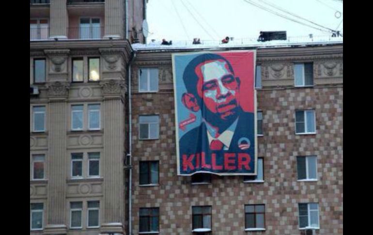 Internacional | La pancarta amaneció en un complejo localizado frente a la embajada de EU Cuelgan cartel que llama 'asesino' a Obama en edificio de Moscú Un grupo de activistas proKremlin se declaró responsable de la colocación del mensaje, que ocupa los tres últimos pisos de la construcción Por: EFE 27 de enero de 2016 - 03:45 hs La prensa rusa señaló que la acción fue realizada por el grupo artístico 'Glavplakat'. TWITTER / MOSCÚ, RUSIA (27/ENE/2016).- Un cartel de más de diez metros de alto y varios de ancho con el retrato del presidente estadounidense, Barack Obama, y la inscripción "killer" (asesino), apareció esta mañana colgado en un edificio situado enfrente de la Embajada de Estados Unidos en Moscú. Un grupo de activistas proKremlin se declaró responsable de la colocación del cartel, que ocupa los tres últimos pisos de un edificio de viviendas situado justo enfrente de la sede diplomática, en pleno centro de la capital rusa. La acción se completó anoche con una proyección con láser verde sobre la fachada de la propia legación diplomática estadounidense, en la que también se calificaba a Obama de "Killer Nº1" (Asesino número uno). Todo indica que la inscripción fue proyectada desde el mismo edificio de viviendas en cuya fachada apareció hoy el cartel. La prensa rusa señaló que la acción fue realizada por el grupo artístico "Glavplakat", un proyecto propagandístico atribuido al Kremlin que cuelga regularmente en Moscú carteles dirigidos contra Occidente, Ucrania y la oposición rusa. La plataforma opositora Rusia Abierta, impulsada por el exmagnate petrolero Mijail Jodorkovski, apunta a que "no cabe duda de que tras los así llamados dibujantes anónimos están los tutores" de la Administración de la Presidencia rusa por la facilidad e impunidad con la que cuelgan sus "obras" por toda la capital rusa. "Cualquier activista opositor que haya colgado un cartel aunque fuera una sola vez sabe que si no te han pillado a la primera te encontrarán a los dos días. Pero en el caso de "Glavplakat" ni la policía ni los servicios secretos buscan" a los responsables, "sino que les ayudan", denunció Rusia Abierta. Tras la crisis de Ucrania, las relaciones entre Rusia y Estados Unidos pasan por su peor momento en más de un cuarto de siglo, desde el final de la guerra fría. Temas Europa Rusia Barack Obama Manifestaciones en el mundo Lee También La paz “se le cae a pedazos” Transportistas de la FAT anuncian bloqueo para esta fecha en CDMX Horarios y afectaciones viales por marchas de HOY en CDMX Marchas HOY CDMX: afectaciones viales, de este 20 de octubre Recibe las últimas noticias en tu e-mail Todo lo que necesitas saber para comenzar tu día Registrarse implica aceptar los Términos y Condiciones