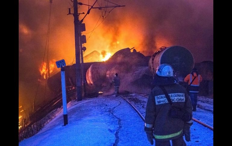 Internacional | Realizan una evacuación de los edificios cercanos al lugar del accidente Decenas de vagones con gas explotan en Rusia Realizan una evacuación de 700 residentes de los edificios cercanos al lugar del accidente Por: AP 5 de febrero de 2014 - 18:05 hs Elementos del equipo de bomberos trabajan para combatir el incendio. AP / KÍROV, RUSIA (05/FEB/2014).- Varias decenas de vagones-cisterna que transportaban gas explotaron el miércoles en Rusia, por lo que se suspendieron las operaciones del ferrocarril Transiberiano y se evacuaron edificios cercanos, dijeron funcionarios de atención de emergencias. No se reportaron personas lesionadas. El accidente ocurrió en una estación de ferrocarril en Kírov, aproximadamente 800 kilómetros al noreste de Moscú, cuando 32 vagones cargados con condensado de gas descarrilaron y se incendiaron. Las llamas engulleron un área grande alrededor de la estación, forzando el desalojo de cerca de 700 residentes de varios edificios de apartamentos cercanos, señaló el Ministerio de Situaciones de Emergencia. Varios cientos de trabajadores de emergencias combatían el incendio y se abrió una investigación sobre el descarrilamiento. Hubo reportes de que parte del condensado se derramó a un río cercano, y una fotografía proporcionada por el ministerio muestra una línea de llamas sobre parte del río. Pero el jefe del ministerio de emergencias Mijaíl Lijachev dijo que no había amenaza al medio ambiente y que no se derramó gas al agua, según agencias de noticias rusas. Temas Europa Accidentes en el mundo Rusia Explosiones Lee También Jugadores de LaLiga se manifiestan contra el partido en Miami Protestan contra Trump en Estados Unidos Accidente de autobús en Brasil deja 15 muertos Represión de ICE en Chicago Recibe las últimas noticias en tu e-mail Todo lo que necesitas saber para comenzar tu día Registrarse implica aceptar los Términos y Condiciones