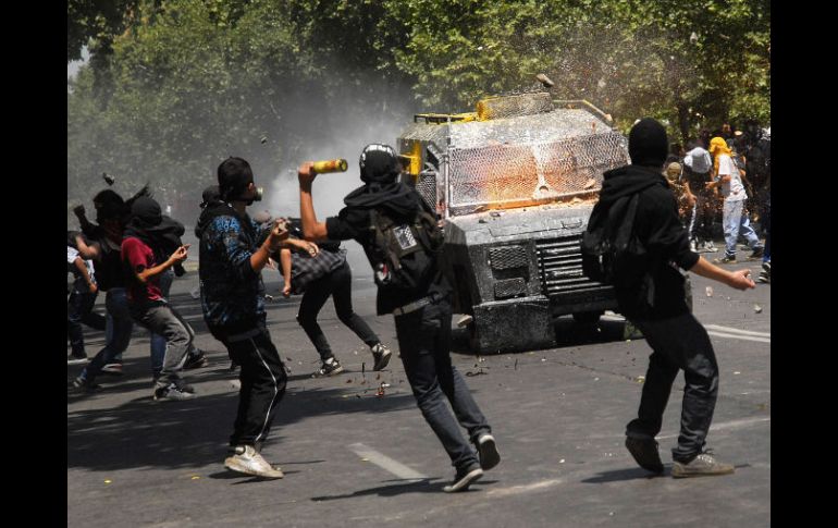 Internacional | El sector transporte ha sido el más afectado con las protestas estudiantiles Dejan protestas sociales cuatro MDD en pérdidas en Chile Autobuses del sistema Transantiago y mobiliario urbano han resultado dañados por los estudiantes universitarios en los últimos cinco meses Por: NTX 19 de octubre de 2011 - 21:04 hs SANTIAGO, CHILE (19/OCT72011).- Las protestas sociales que comenzaron en Chile hace cinco meses para exigir una profunda reforma a la educación, dejaron pérdidas superiores a los cuatro millones de dólares, informó hoy el diario La Tercera. La edición digital del periódico chileno, que citó fuentes del sector transporte, precisó que los daños a un millar de autobuses del sistema Transantiago, semáforos y paraderos suman dos mil millones de pesos, unos cuatro millones de dólares. Indicó que desde que comenzaron las protestas sociales, encabezadas por los estudiantes, hace cinco meses, cuatro autobuses han sido quemados y mil de los seis mil 200 vehículos que posee la flota han sido dañados de diversa consideración. Los mayores daños al sistema de transporte se produjeron el 24 y 25 de agosto pasado, jornadas de paro nacional que fueron convocadas por la Central Unitaria de Trabajadores (CUT), el principal ente sindical de este país sudamericano. Un total de 759 autobuses sufrieron daños en ambos días, a los cuales se suman 210 ataques a semáforos y tres cámaras de control de tránsito destruidas, entre otra infraestructura vial. Unos 250 mil estudiantes universitarios y de educación media chilenos se encuentran en paro desde hace cinco meses para exigir una profunda reforma al sistema de enseñanza que implique el fin al lucro y la gratuidad en la educación superior. Temas América Latina Chile Manifestaciones en el mundo Lee También Marchas CDMX: HOY, 16 de octubre, estas son las afectaciones viales Sin ratificación Rebelión en el campo Lemus respalda a productores de maíz y reconoce su reclamo 'por un precio justo' Recibe las últimas noticias en tu e-mail Todo lo que necesitas saber para comenzar tu día Registrarse implica aceptar los Términos y Condiciones