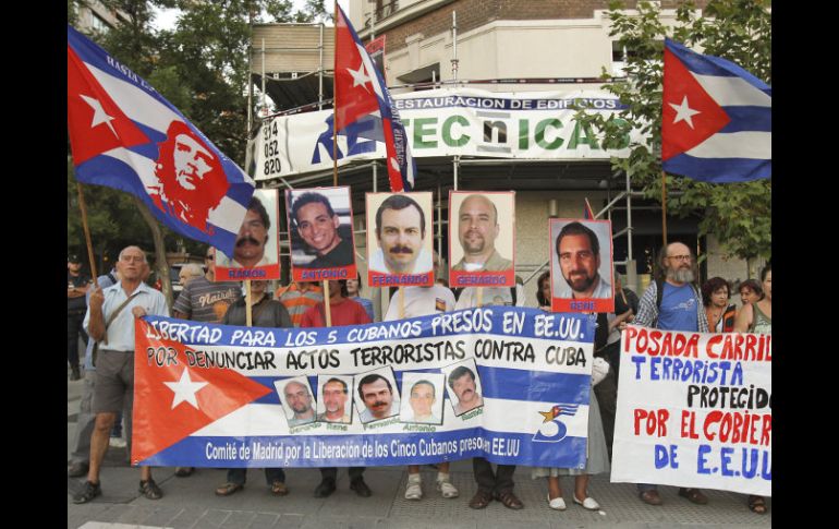 Internacional | Denunciaron abogados presuntas injusticias cometidas a sus clientes Denuncian amenaza de EUA a grupo de agentes cubanos una vez liberados El primero en ser liberado, el próximo 7 de octubre, no podría salir del país y regresar a Cuba para reunirse con su esposa Por: NTX 12 de septiembre de 2011 - 14:03 hs Manifestación en Madrid a favor de los presos cubanos en EU. EFE / MIAMI, ESTADOS UNIDOS (12/SEP/2011).- Abogados de los cinco cubanos presos en Estados Unidos bajo cargos de espionaje, denunciaron hoy en el 13 aniversario de su detención, que el gobierno estadunidense amenaza con seguir castigando al grupo aún después que el primero sea liberado el próximo mes. Phil Horowitz, abogado de René González, el primero de los cinco cubanos que será puesto en libertad tras cumplir una sentencia de más de 13 años de cárcel, denunció este lunes en teleconferencia que el gobierno estadunidense busca imponer a su cliente tres años de libertad condicional una vez que salga de prisión el 7 de octubre. Añadió que la libertad condicional prolongaría el castigo contra González, porque bajo esa condición su cliente, que ostenta la ciudadanía estadunidense, no podría salir del país y regresar a Cuba para reunirse con su esposa, a quien no puede ver por que se le negó la entrada a Estados Unidos. Explicó que González podría renunciar a la ciudadanía estadunidense una vez en libertad, pero corre el riesgo de no ser liberado, al iniciarse entonces una detención por motivos migratorios que se prolongaría meses o quizás años hasta lograr su deportación a Cuba. Horowitz informó que se le ha solicitado a un juez federal el permitir que su cliente pueda regresar a Cuba para reunirse con su familia una vez que sea puesto en libertad. En la teleconferencia, auspiciada por el 'Comité Nacional Para la Liberación de Los Cinco Cubanos', un grupo con sede en san Francisco, California, participaron los abogados de Gerardo Hernández y Ramón Labañino, otros intregrantes del grupo de los cinco, quienes denunciaron presuntas injusticias cometidas en el proceso judicial a sus clientes. Los otros integrantes son Antonio Guerrero y Fernando González. Los cinco agentes de inteligencia de Cuba fueron detenidos en Miami el 12 de septiembre de 1998 bajo más de 20 cargos federales de espionaje, conspiración y uso de identificaciones falsas. Cuba reconoce que los cinco prisioneros formaban parte de sus agentes de inteligencia, pero sostiene que no espiaban al gobierno estadunidense sino a los grupos de derecha de exiliados cubanos asentados en Miami que conspiran contra régimen de la isla. Los cinco detenidos son vistos como 'héroes' por parte del gobierno cubano quien los muestra como mártires que han sacrificado su libertad en defensa de Cuba. Las presuntas arbitrariedades cometidas en la detención, juicio en contra de los cinco y en el rechazo a sus apelaciones en las cortes, ha despertado criticas de grupos internacionales de derechos humanos, incluyendo a la Comisión en Derechos Humanos de Naciones Unidas. Temas Estados Unidos Cuba Espionaje Violación a los Derechos Humanos Lee También México y Estados Unidos refuerzan cooperación en seguridad fronteriza ¿Tormenta "Sonia" afectará a Jalisco en los próximos días? Ebrard buscará evitar imposición de aranceles en su visita a EU SAT: ¿Cómo saber si hay servicio tras el paro de trabajadores? Recibe las últimas noticias en tu e-mail Todo lo que necesitas saber para comenzar tu día Registrarse implica aceptar los Términos y Condiciones
