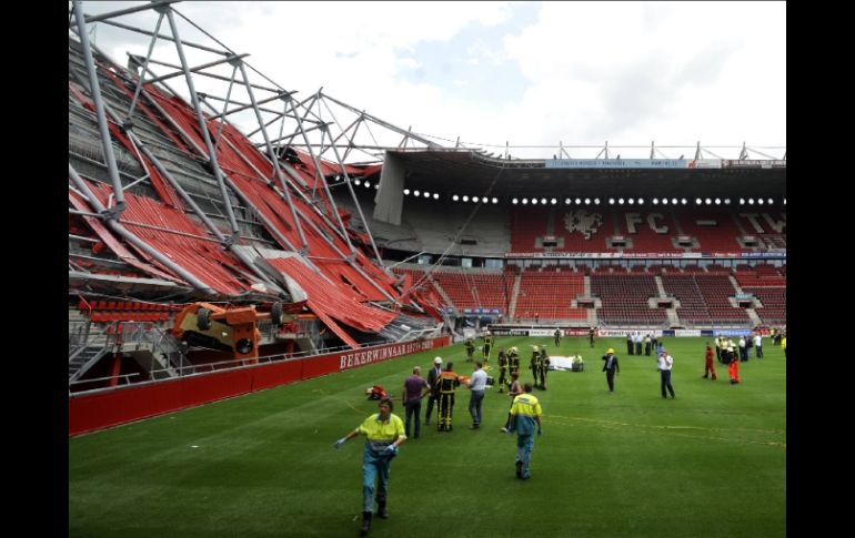 Internacional | Los primeros reportes señalan al menos cinco heridos en el accidente Derrumbe en estadio de Holanda atrapa a personas; no saben cuántas Los primeros reportes señalan al menos cinco heridos en el accidente Por: AFP 7 de julio de 2011 - 07:04 hs LA HAYA, HOLANDA (07/JUL/2011).- Cinco personas resultaron heridas el jueves al derrumbarse parte del techo del estadio del club de fútbol del FC Twente, en Enschede (este de Holanda), según la televisión pública holandesa NOS. "Puedo confirmar que hacia el mediodía hubo un derrumbe en el estadio del FC Twente", declaró a la AFP Jan Lamberts, un portavoz de la policía. "Una parte del techo se derrumbó", dijo. "Hay gente atrapada bajo los escombros", añadió. "No puedo precisar cuántos". Según la televisión pública holandesa, cinco personas, probablemente obreros, quedaron heridos en el derrumbe que se produjo en el contexto de trabajos para agrandar el estadio. Según la agencia de prensa holandesa, hay testigos que vieron a obreros que salían corriendo en momentos que una parte del techo se derrumbaba. "Cayó haciendo mucho ruido, como un castillo de cartas que se derrumba", declaró un testigo. El desplome se produjo en momentos en que no había partido de fútbol. Los servicios de emergencia se hicieron presentes en el lugar para socorrer a las personas atrapadas bajo los escombros. Temas Europa Accidentes en el mundo Holanda Lee También Jugadores de LaLiga se manifiestan contra el partido en Miami Protestan contra Trump en Estados Unidos Accidente de autobús en Brasil deja 15 muertos Represión de ICE en Chicago Recibe las últimas noticias en tu e-mail Todo lo que necesitas saber para comenzar tu día Registrarse implica aceptar los Términos y Condiciones