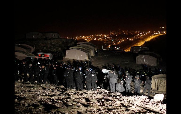 Internacional | Policía y ejército retiraron por la fuerza más de 250 palestinos que protestaban Desaloja Israel a palestinos que protestaban contra colonia judía Policía y ejército israelí retiraron por la fuerza más de 250 palestinos que protestaban contra el establecimiento de la nueva colonia Por: NTX 12 de enero de 2013 - 21:49 hs El desalojo, en el que participaron cientos de militares y policías, se llevó a cabo en el asentamiento de Ma'aleh Adumim. REUTERS / JERUSALÉN, ISRAEL (12/ENE/2013).- La policía y el ejército de Israel retiraron por la fuerza esta madrugada un campamento de más de 250 palestinos que protestaban contra el establecimiento de una nueva colonia judía en Cisjordania. El desalojo, en el que participaron cientos de militares y policías, se llevó a cabo en el asentamiento de Ma'aleh Adumim, donde el gobierno israelí de Benjamin Netanyahu planea construir la sección E1 de sus colonias judías en territorio palestino. El diario israelí Jerusalem Post informó que la operación policiaco-militar se inició en los primeros minutos de este domingo y terminó dos horas más tarde, sin que hasta ahora se reporten arrestos o personas heridas. Las alrededor de 20 tiendas de campaña desalojadas habían sido instaladas el viernes por activistas palestinos que se oponen a que Israel continúe la expansión de colonias judías en Cisjordania. La construcción de la E1 fue ordenada por el propio primer ministro Netanyahu, pero los palestinos denuncian que ello va en contra de los esfuerzos internacionales para la creación de lo que algún día sería un Estado palestino independiente. De acuerdo con Jerusalem Post, en el lomerío seleccionado para construir la sección E1 está planeado levantar un total de tres mil 500 viviendas. Organizaciones internacionales han exigido a Netanyahu detener la construcción de colonias judías en territorio palestino, como gesto de buena voluntad para avanzar en las negociaciones que pongan fin al histórico conflicto en Medio Oriente. Temas Medio Oriente Conflicto Israel-Palestina Israel Palestina Recibe las últimas noticias en tu e-mail Todo lo que necesitas saber para comenzar tu día Registrarse implica aceptar los Términos y Condiciones