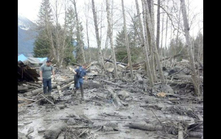 La avalancha de tierra, árboles, rocas y otro material, de por lo menos 41 metros (135 pies) de ancho y 55 metros (180 pies) de profundidad, ocurrió poco antes de las 11 a.m. El tamaño de la avalancha se calculó inicialmente en 1,6 kilómetros.El incidente bloqueó completamente la Ruta Estatal 530 cerca de la localidad de Oso, unos 89 kilómetros (55 millas) al norte de Seattle. También bloqueó el Saliente Norte del río Stillaguamish, por lo que se esperaban inundaciones en la zona.Las autoridades pedían a los vecinos que viven cerca del deslave que se prepararan para abandonar sus viviendas de inmediato, dijo Bronlea Mishler, portavoz del Condado Snohomish."No es una orden de evacuación", dijo. "Pero es necesario que los que viven a lo largo del río estén preparados. La situación cambia con rapidez".Inicialmente se reportaron dos muertos, pero las autoridades dijeron después que un herido falleció en el hospital. Los lesionados que se reportaron inicialmente fueron un niño de 6 meses y cinco adultos, dijo Shari Ireton, portavoz del Condado Snohomish. Los heridos fueron llevados a un hospital cercano, así como a otras instalaciones en el Condado Skagit, al norte, y a Seattle, en el sur.Las autoridades dijeron que el deslave se produjo por la saturación de agua de la tierra debido a las fuertes lluvias.Equipos de búsqueda y rescate llegaron a la zona desde toda la región, además de la Patrulla Estatal de Washington y el Cuerpo de Ingenieros.