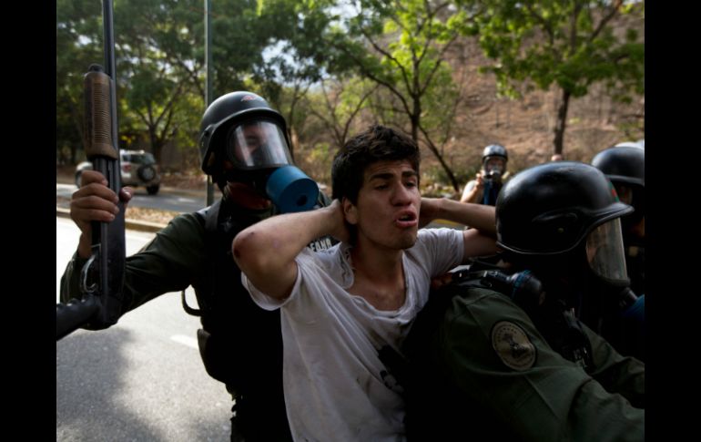 Internacional | Manifestantes se enfrentan a la policía luego de la manifestación Detienen a 23 personas tras marcha pacífica en Venezuela Manifestantes se enfrentan a la policía luego de la manifestación de opositores Por: EFE 26 de abril de 2014 - 20:36 hs Elementos de la Guardia Nacional Bolivariana detienen a uno de los jóvenes durante el enfrentamiento. AP / CARACAS, VENEZUELA (26/ABR/2014).- La policía venezolana detuvo hoy a 23 personas, entre ellos 10 menores de edad, en dos enfrentamientos con la policía registrados en Caracas con posterioridad a una marcha de estudiantes opositores al Gobierno que transcurrió sin incidentes. Las detenciones fueron informadas a emisoras estatales por el ministro del Interior, Miguel Rodríguez, y el general Manuel Quevedo, jefe regional de la Guardia Nacional Bolivariana (GNB, policía militarizada), que se efectuaron en Chacao y Baruta, dos municipios capitalinos con alcaldes opositores. Rodríguez precisó que todos los detenidos estaban encapuchados y que 18 de ellos fueron capturados por vecinos de un populoso barrio de Baruta, adonde buscaron refugio tras ser perseguidos por agentes de la GNB. "Fue una detención popular (...), la misma gente de las casas del barrio los detuvo y se los entregó a la Guardia", entre ellos los diez menores que confesaron fueron contactados por activistas que "están identificados", dijo el ministro sin más precisiones. Quevedo declaró a su vez que la GNB identificó a una treintena de activistas sospechosos antes de que comenzara la marcha estudiantil y que al atardecer detuvo a 23 de ellos. "Les estábamos haciendo seguimiento (...), vimos a los que se iban encapuchando (...), miembros de un grupo que quiere aparentar una situación que no es real; la ciudad se encuentra en paz, el país está tranquilo y esta es una situación violenta promovida solo por algunos que los tenemos identificados", sostuvo el general. El Gobierno venezolano afronta desde el 12 de febrero pasado una oleada de protestas en contra de sus políticas, algunas de las cuales han derivado en hechos de violencia que hasta este viernes dejaron, principalmente en "guarimbas" (barricadas), 41 muertos, 710 heridos y 2.626 detenidos, de los cuales 180 siguen presos, según cifras oficiales. Temas América Latina Venezuela Manifestaciones en el mundo Lee También José Jerí asume como presidente de Perú ¿Por qué María Corina Machado ganó el Nobel de la Paz? Congreso de Perú destituye como presidenta a Dina Boluarte Premio Nobel de la Paz es para María Corina Machado, líder opositora de Venezuela Recibe las últimas noticias en tu e-mail Todo lo que necesitas saber para comenzar tu día Registrarse implica aceptar los Términos y Condiciones