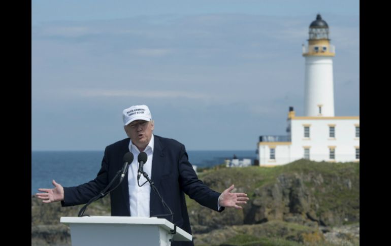 Internacional | Sobre el 'Brexit', el precandidato republicano señala que 'es algo bueno, fantástico' Donald Trump celebra salida de Reino Unido de UE ''Es una gran noticia. Básicamente recuperaron a su país. Eso es una cosa grande'', afirma Por: NTX 24 de junio de 2016 - 07:31 hs Trump, en la inauguración de un campo de golf de su propiedad en Turnberry, Escocia, norte de Reino Unido. AFP / O. Scarff ESCOCIA, REINO UNIDO (24/JUN/2016).- Doland Trump, el precandidato republicano a la Presidencia de Estados Unidos, celebró que la salida de Reino Unido de la Unión Europea (UE) "es algo bueno, fantástico". "Es una gran noticia. Básicamente recuperaron a su país. Eso es una cosa grande", afirmó el aspirante a la Casa Blanca en la inauguración de un campo de golf de su propiedad en Turnberry, Escocia, norte de Reino Unido. "Dije que esto iba a pasar y es algo grande. Están enfadados por las fronteras, por las personas que llegan al país y se quedan, están enfadados por muchas cosas", dijo sobre los ciudadanos británicos. El millonario estadounidense consideró que ese mismo enojo en la gente está presente "en todo el mundo", por lo que pronosticó que "este paso (dado por Reino Unido) no será el último". Trump, quien llegó con una gorra blanca con la leyenda "Hacer grande a América otra vez", afirmó que también en Estados Unidos ocurren muchas cosas por las que hay malestar en Reino Unido. "Creo que lo vamos a hacer muy bien también en Estados Unidos, y es esencialmente lo mismo que pasa en Estados Unidos", aseveró. Trump fue recibido por una docena de manifestantes con pancartas que decían "No al racismo", mientras que el comediante Simon Brodkin fue sacado del lugar al interrumpir al aspirante y mostrar una pelota de golf roja con una cruz esvástica. Temas Europa Reino Unido Estados Unidos Unión Europea Donald Trump Referendo en Reino Unido Lee También EU alerta sobre posible ruptura del alto el fuego en Gaza por Hamás Verstappen se lleva la pole en Austin y presiona a los McLaren Sheinbaum descarta riesgo por crecimiento del río Pánuco en Tamaulipas Protestan contra Trump en Estados Unidos Recibe las últimas noticias en tu e-mail Todo lo que necesitas saber para comenzar tu día Registrarse implica aceptar los Términos y Condiciones